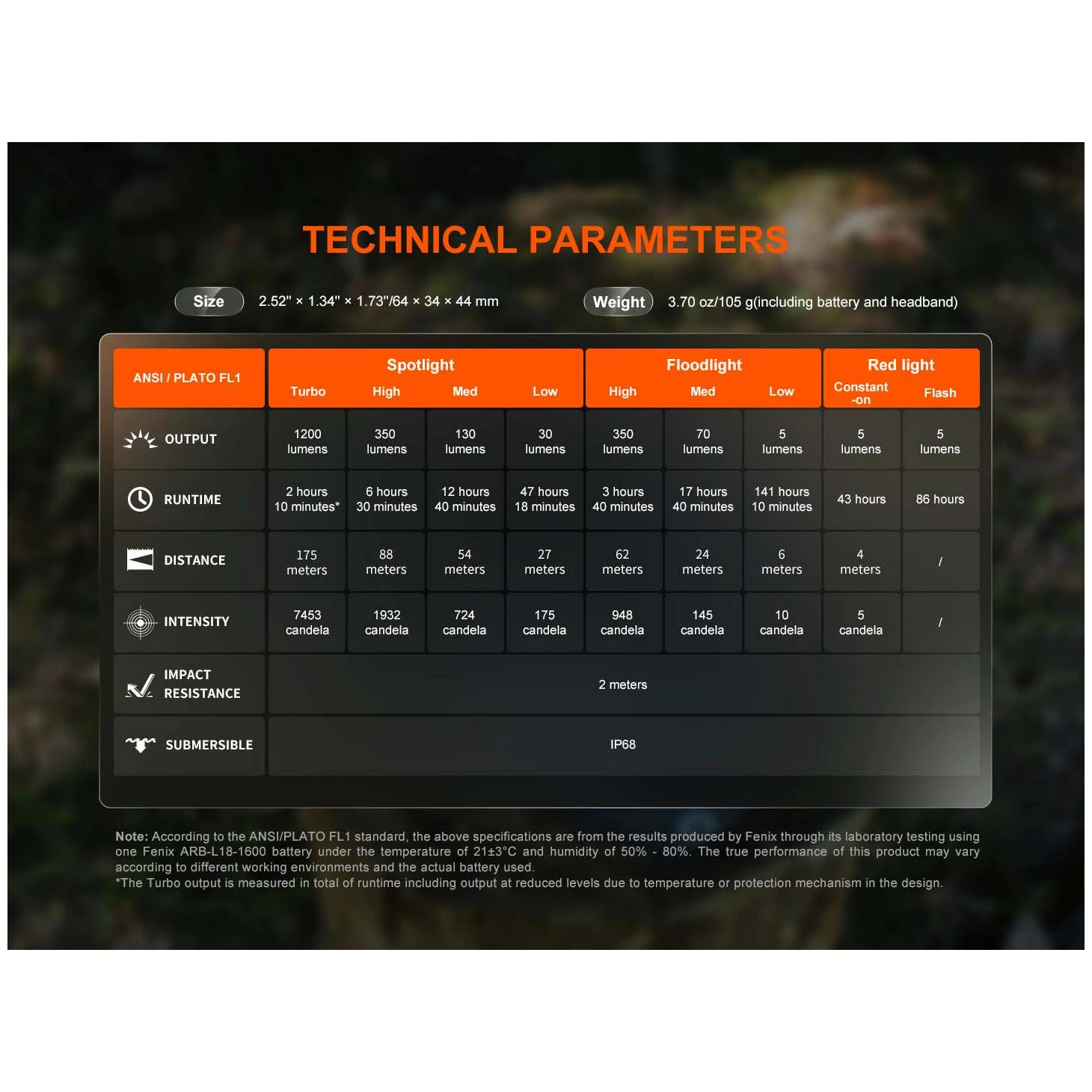 Tutti i parametri delle lampade frontali (flusso luminoso, durata della batteria, impermeabilità, autonomia e resistenza agli urti) sono misurati in conformità alla norma ANSI/NEMA FL 1-2009.