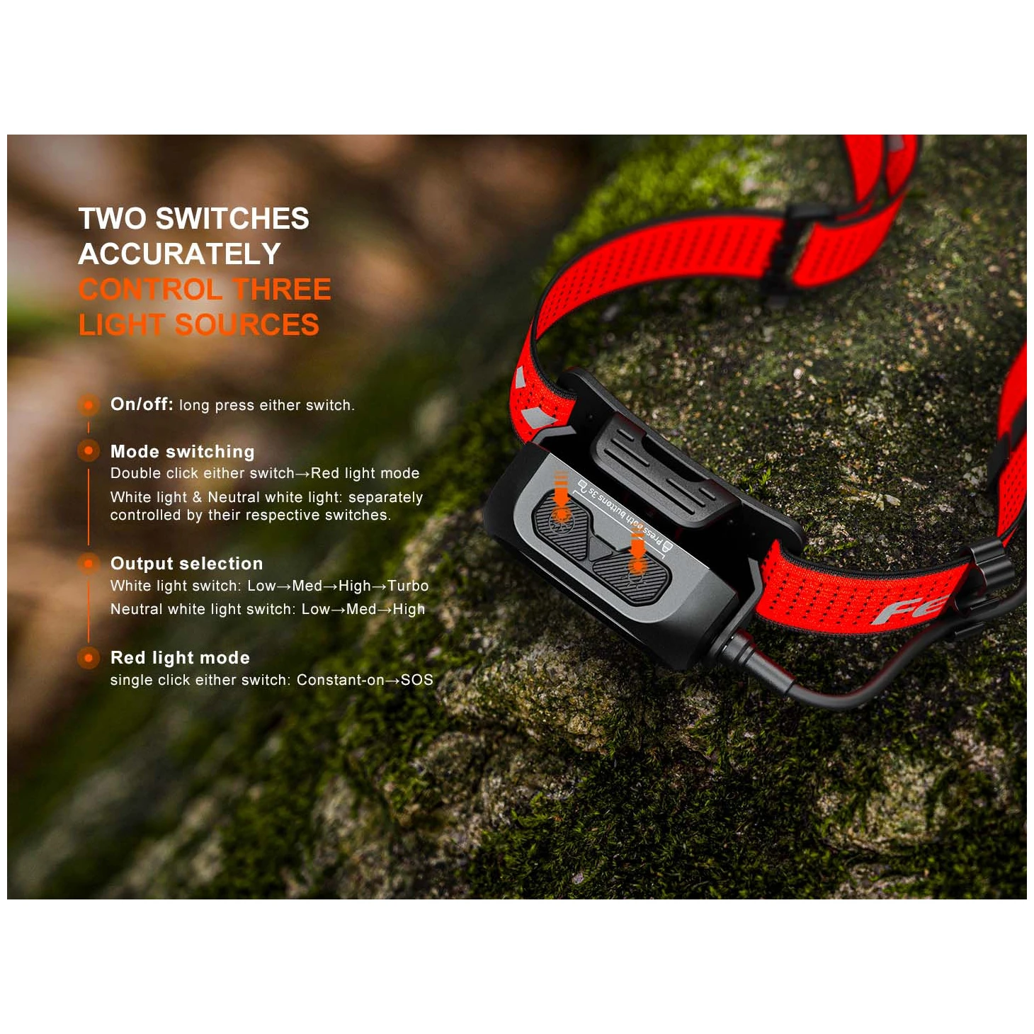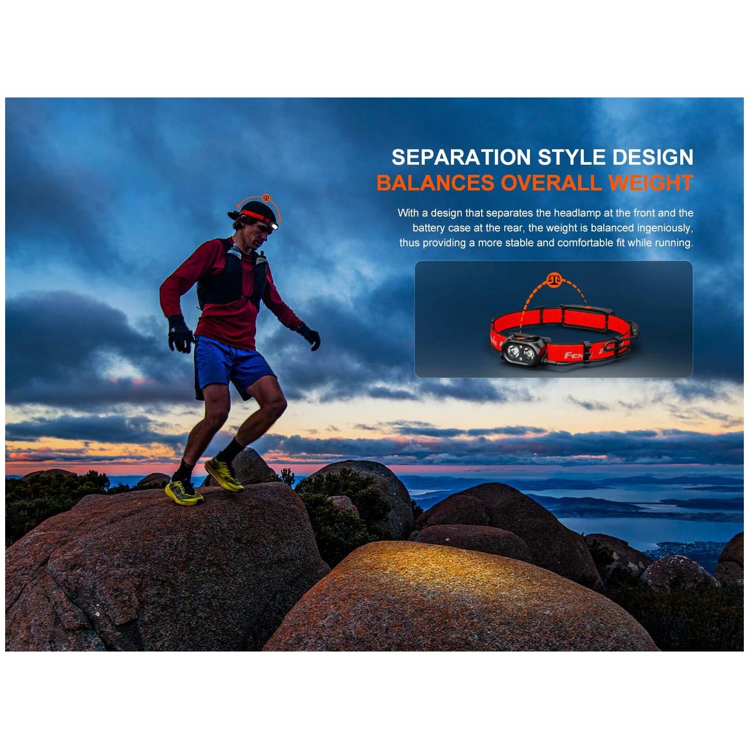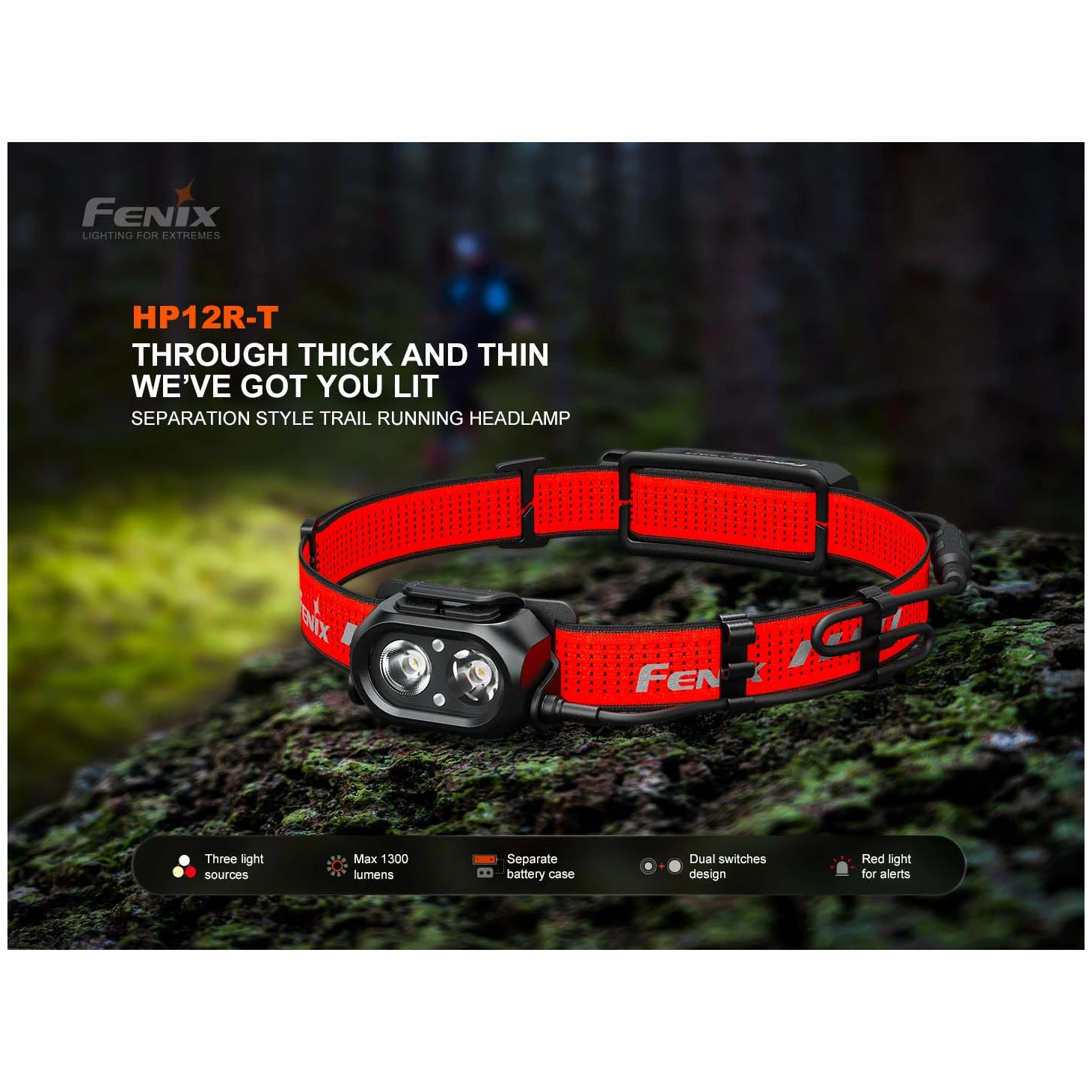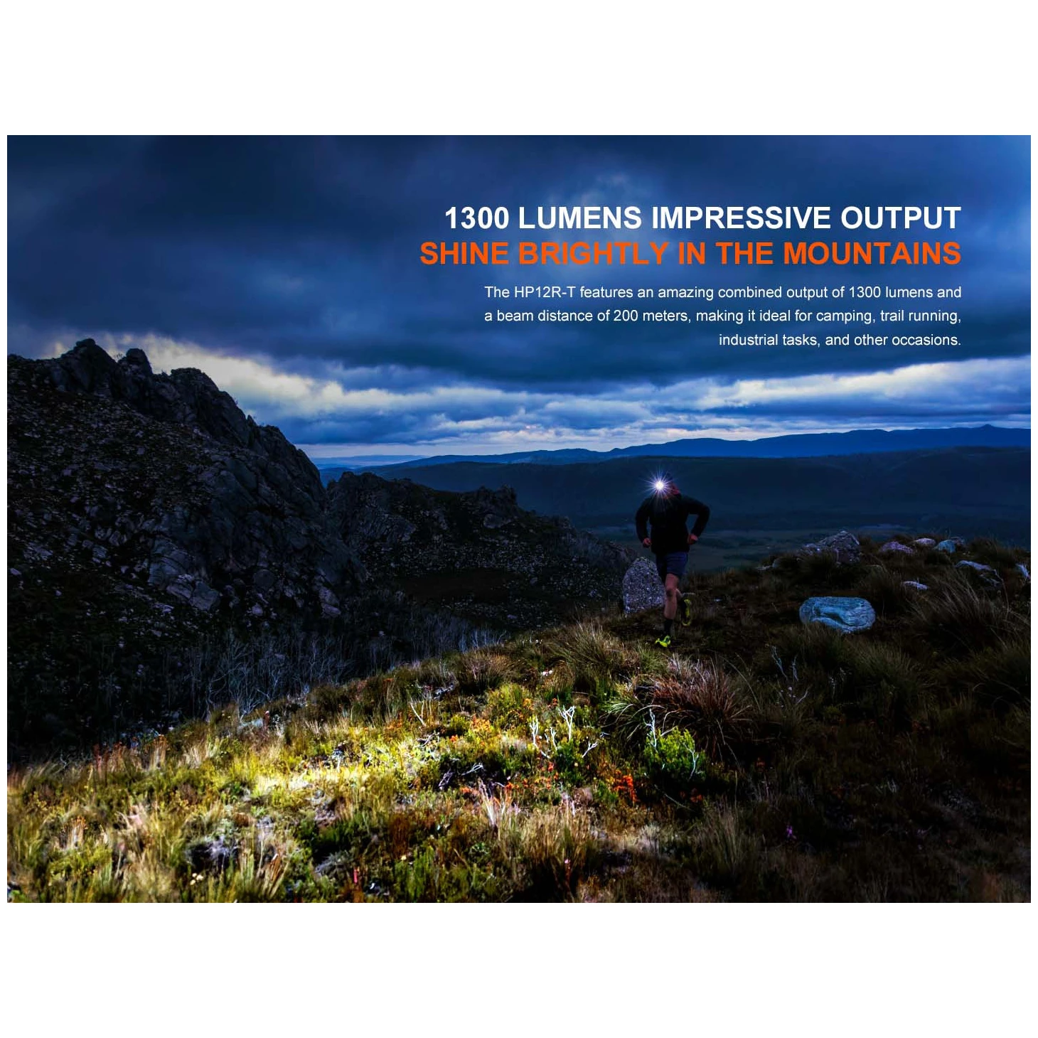 La Fenix HP12R-T è una lampada frontale ad alte prestazioni con una struttura pratica che presenta un vano batteria posteriore separato. Grazie ai due riflettori, offre un flusso luminoso fino a 1300 lumen (ANSI) e una portata fino a 200 metri. I riflettori producono fasci di luce ben focalizzati che brillano da lontano e da vicino allo stesso tempo.