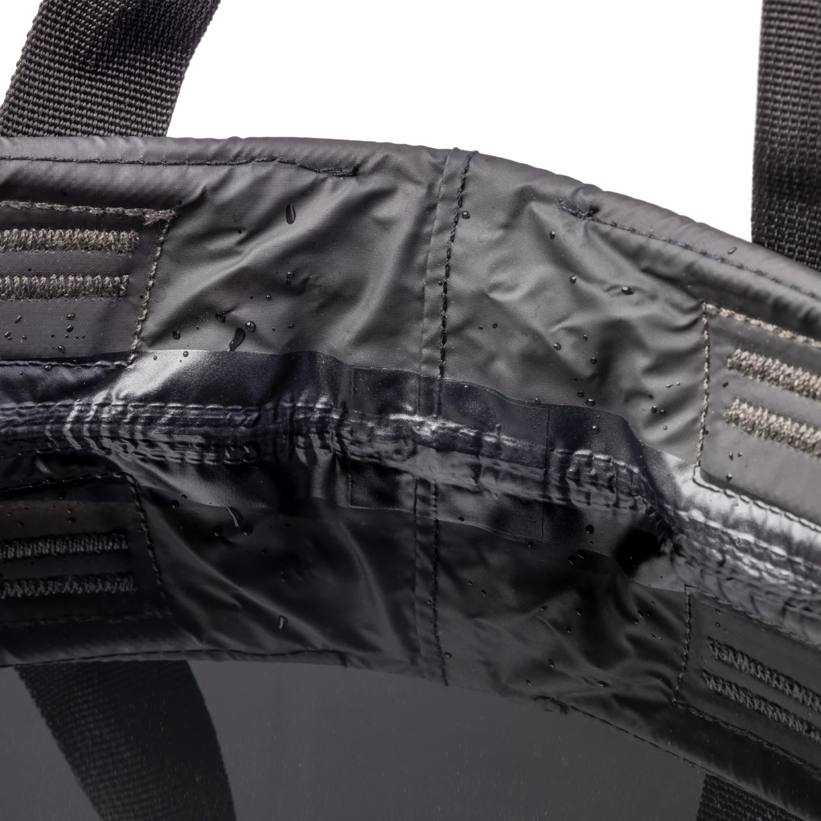 Il materiale è costituito da nylon riciclato impermeabile 70D, certificato secondo RCS e bluesign®, senza l'uso di PVC e sostanze chimiche PFAS. La superficie interna nera accelera l'asciugatura e aumenta la resistenza nell'uso quotidiano.