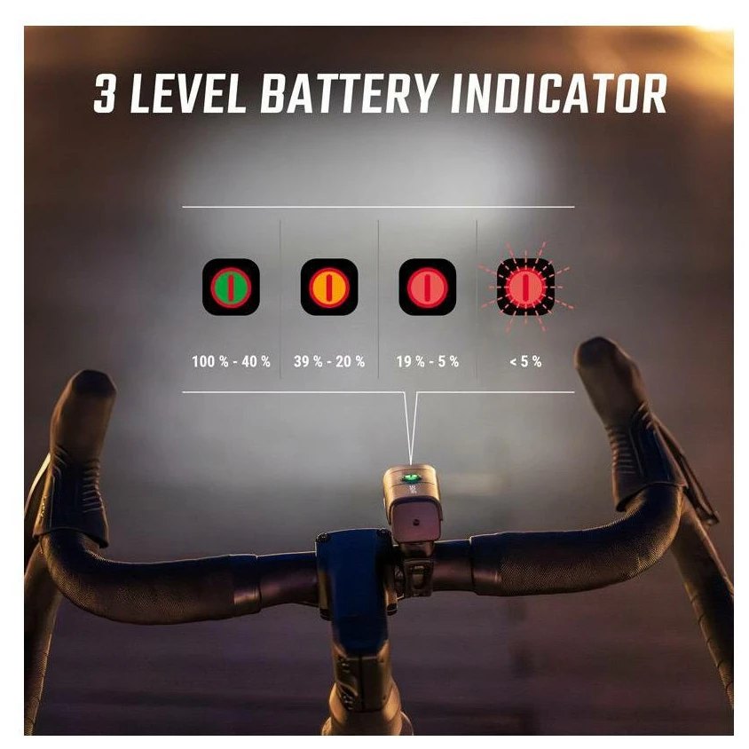 La luce è dotata di due modalità di illuminazione, un cono migliorato per una migliore visibilità e LED laterali che garantiscono una maggiore sicurezza durante l'uso. Grazie alla funzione di protezione contro l'accensione accidentale, non devi preoccuparti che si accenda nello zaino. L'installazione è rapida e senza attrezzi: grazie al supporto in silicone regolabile a 360°, la luce si adatta facilmente a qualsiasi tipo di manubrio.