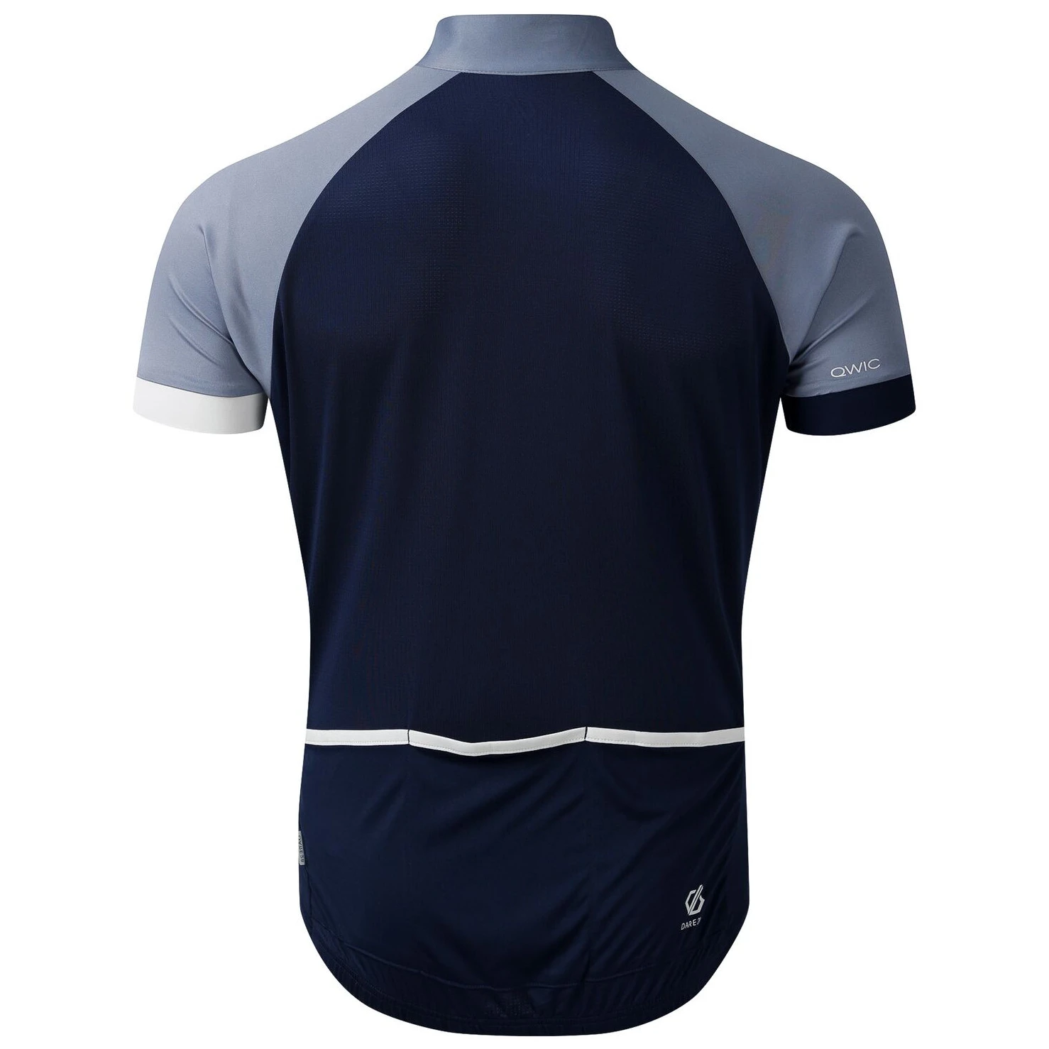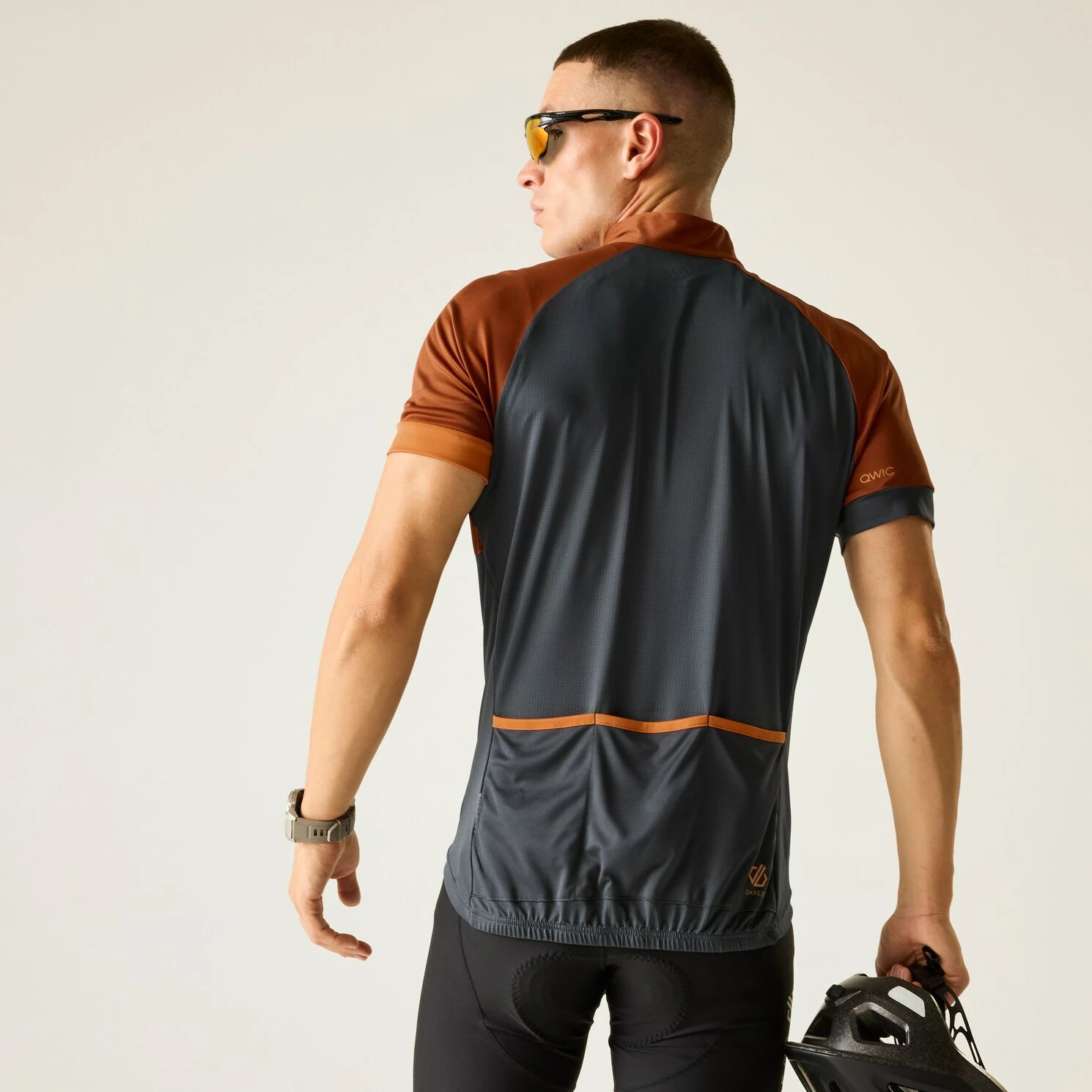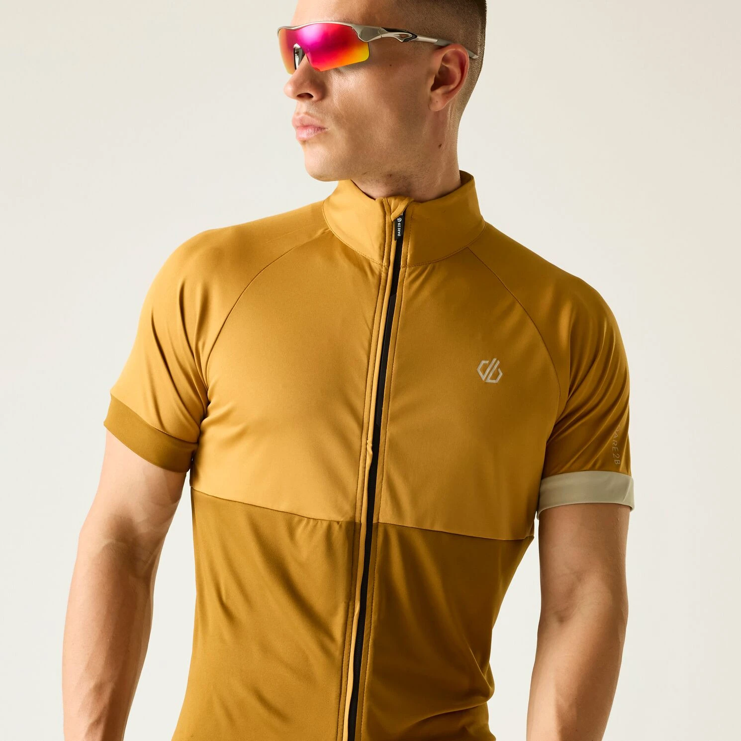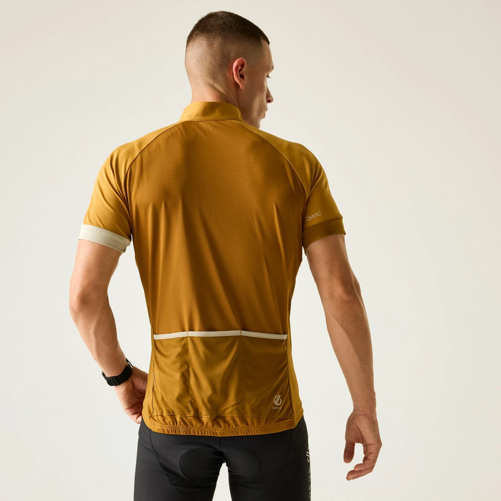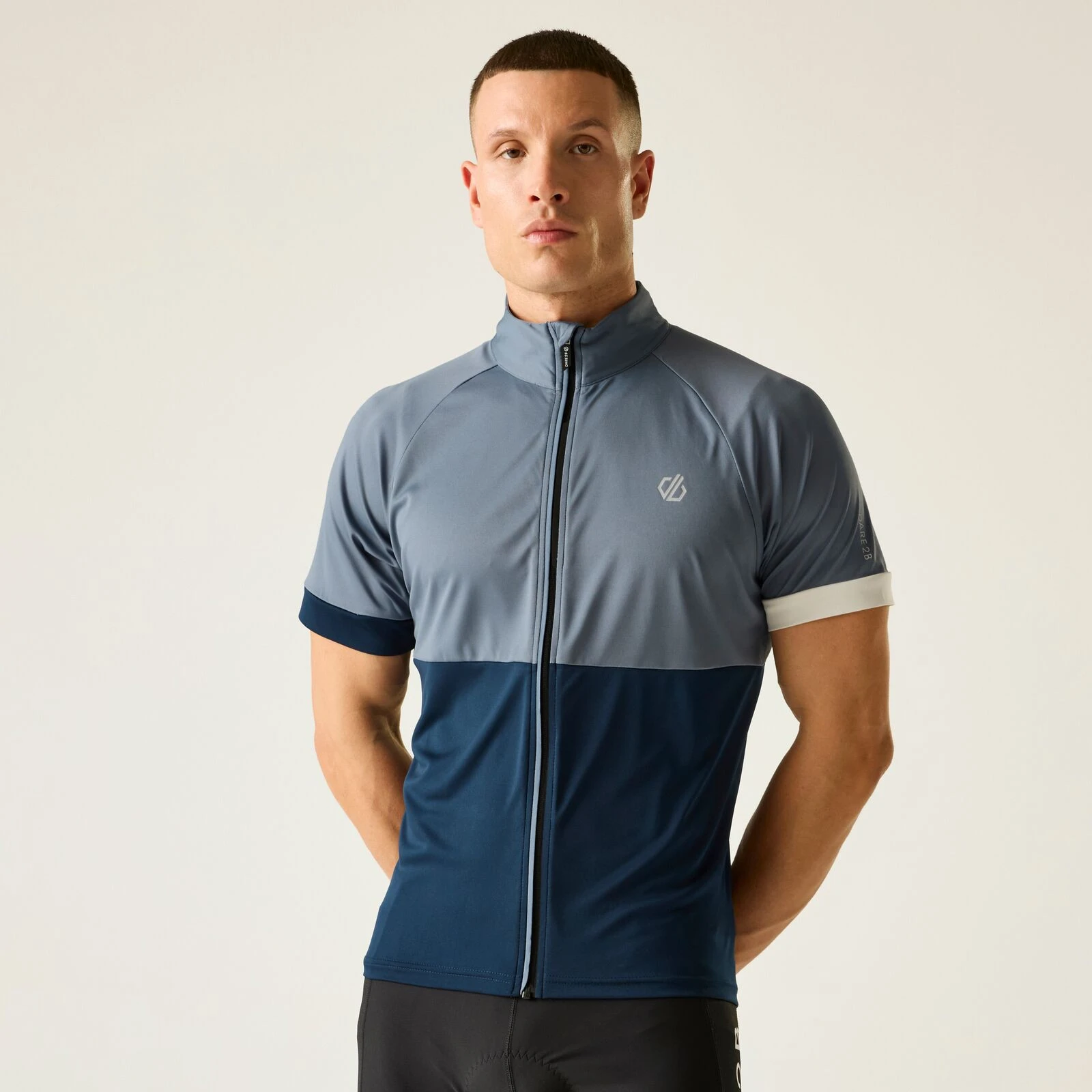 Maglia da ciclismo leggera da uomo Dare 2b Protraction con maniche corte e cerniera di ventilazione a tutta lunghezza. È realizzato in un tessuto riciclato fresco e traspirante, eccezionalmente morbido e leggero. La protezione antibatterica integrata contro gli odori mantiene la sensazione di freschezza per tutto il giorno. Dispone di 3 tasche posteriori per riporre gli oggetti essenziali. I dettagli riflettenti vi rendono visibili durante le corse notturne.