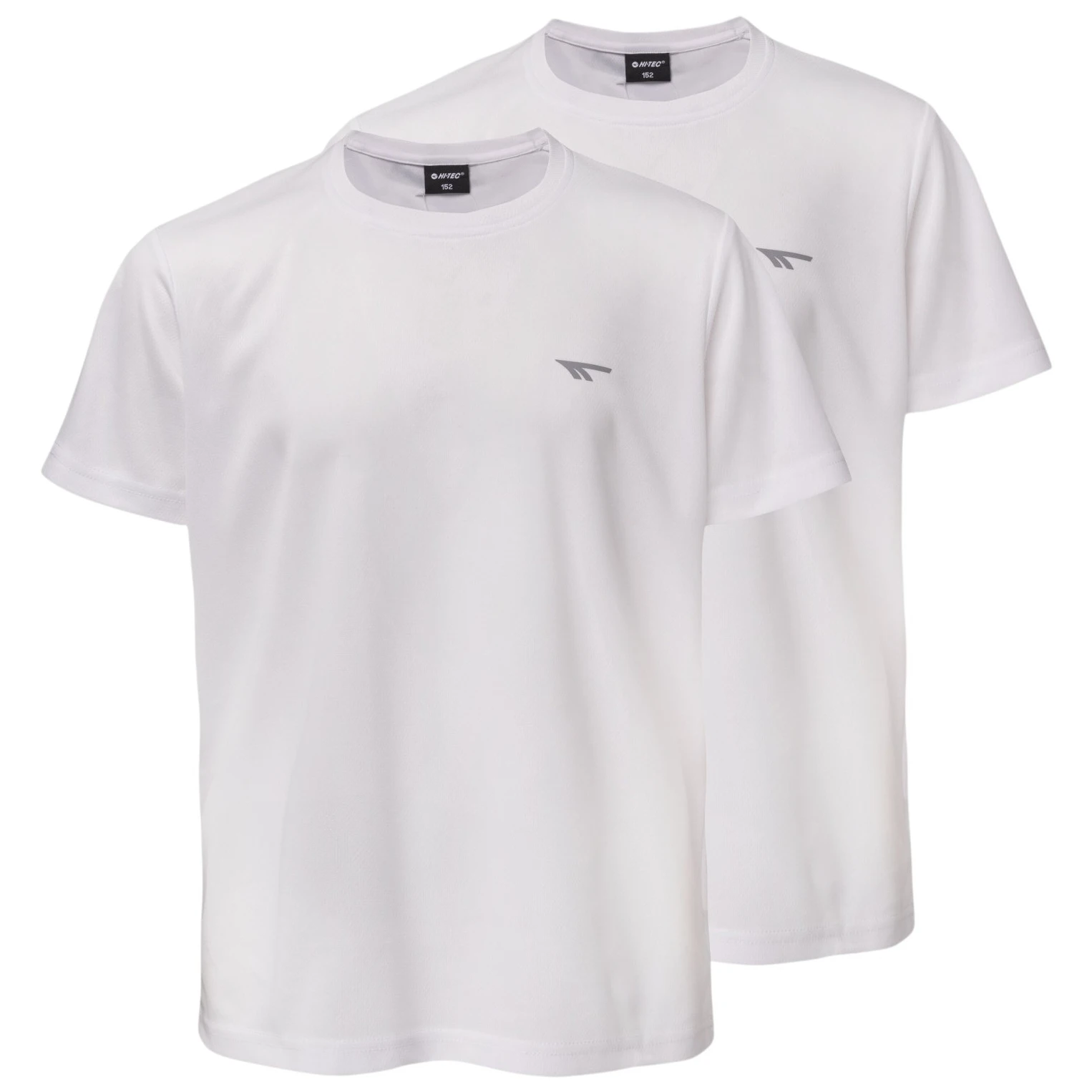 Maglietta sportiva da bambino Hi-Tec Jodin JR in una pratica confezione da 2 pezzi in poliestere leggero con elementi riflettenti per allenamento e uso quotidiano.