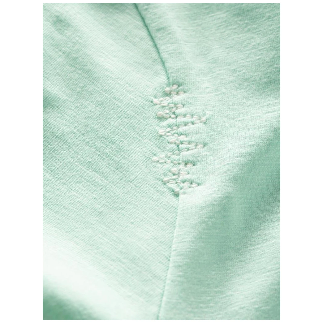 Fibre modali austriache (TENCEL™) in combinazione con il cotone turco e l'elastan (Lycra®) ventilano perfettamente il corpo e non danno possibilità ai batteri. La T-shirt ha una vita affusolata, uno scollo rotondo e una cucitura decorativa sull'orlo delle maniche.