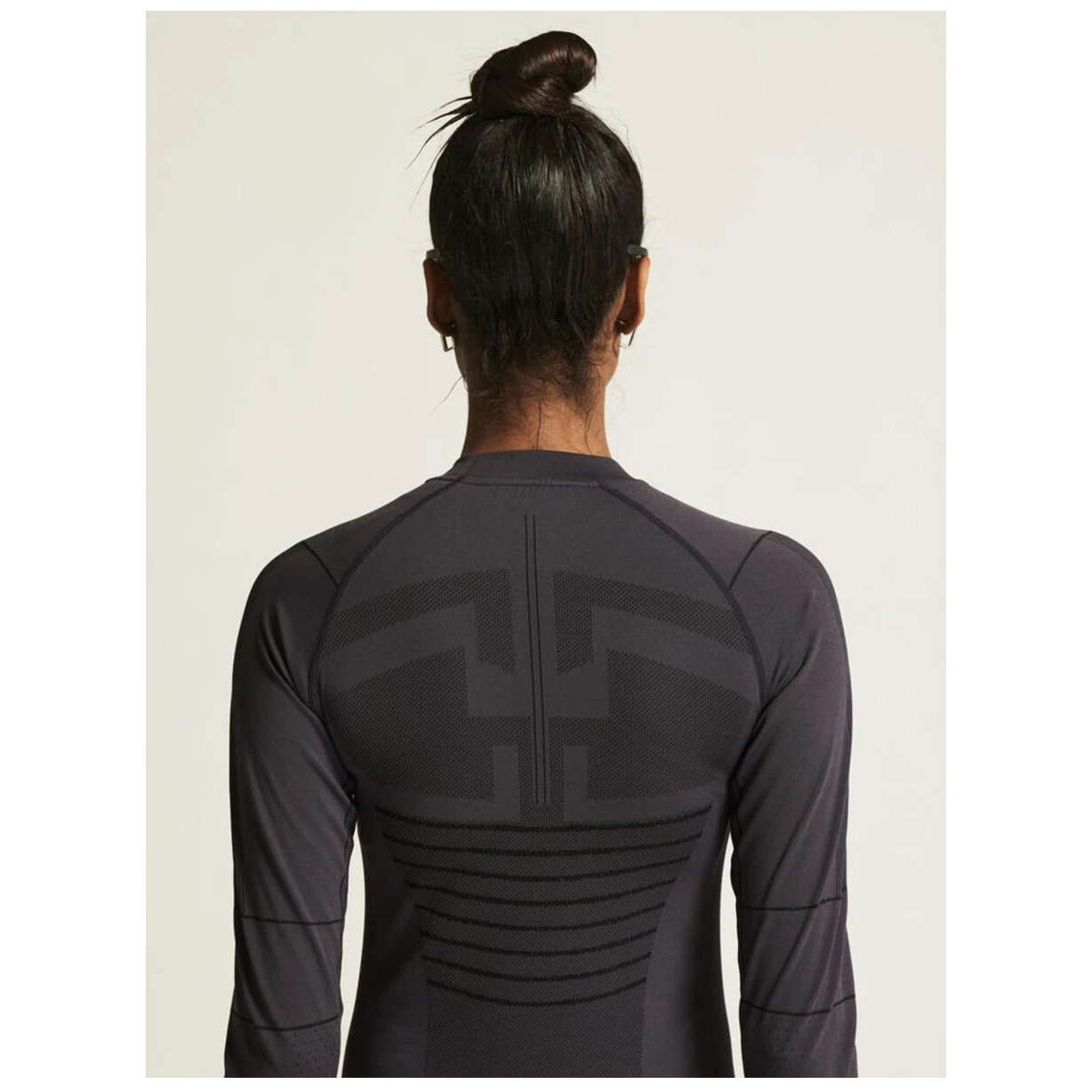 La Active Intensity Long Sleeve Functional T-Shirt da donna di Craft è un innovativo strato di base con una funzionalità superiore anche durante le attività ad alta intensità. Il materiale è flessibile e altamente funzionale e garantisce una gestione ottimale della temperatura corporea e il trasporto dell'umidità. Il modello ha un taglio atletico ed è privo di cuciture. Vi terrà a vostro agio anche in condizioni di freddo. La maglietta può essere utilizzata anche come strato separato.