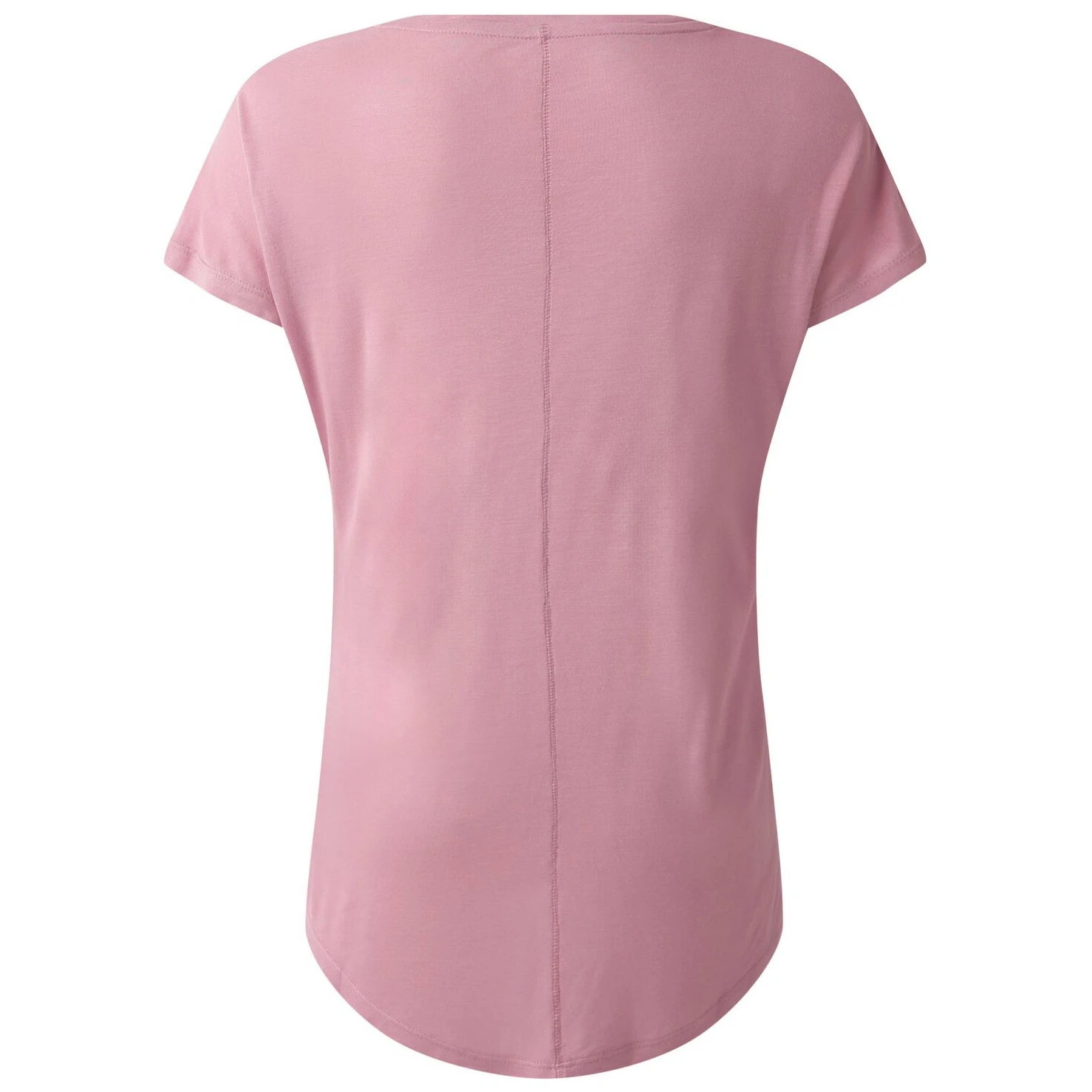 La maglietta in bambù Serene Tee di Dare 2b è ideale per yoga, pilates e tempo libero. Ha maniche corte, scollo a V e un taglio più ampio elastico che non limita i movimenti. La parte anteriore presenta una stampa moderna.