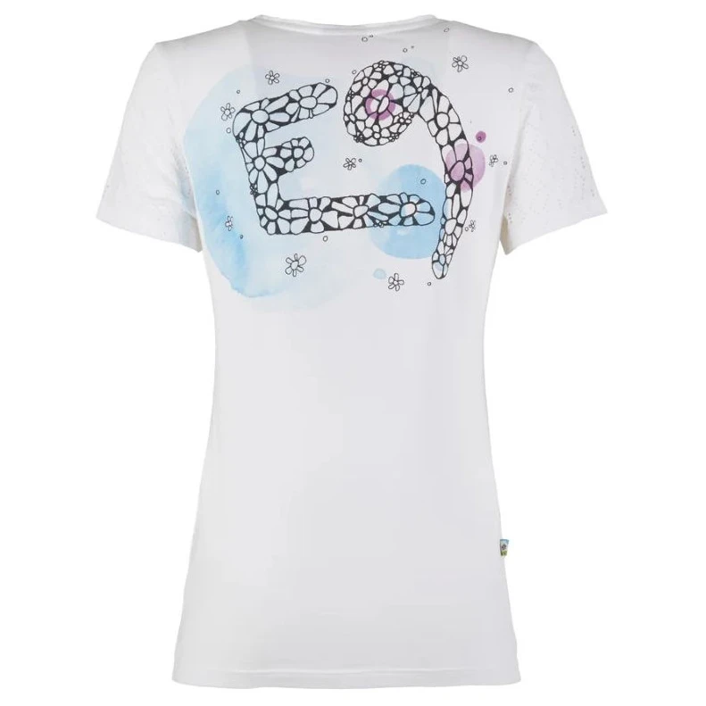La T-shirt da donna a maniche corte Light Ball Women's di E9 è realizzata in 92% cotone organico e 8% elastan. La T-shirt ha maniche in tessuto di pizzo, che non servono solo per la ventilazione ma anche come elemento di moda. Sulla schiena ha una stampa elegante del grande logo E9. È realizzata in Italia con un impatto ambientale minimo e con particolare attenzione alla realizzazione stravagante, al design unico e al comfort durante l'arrampicata.