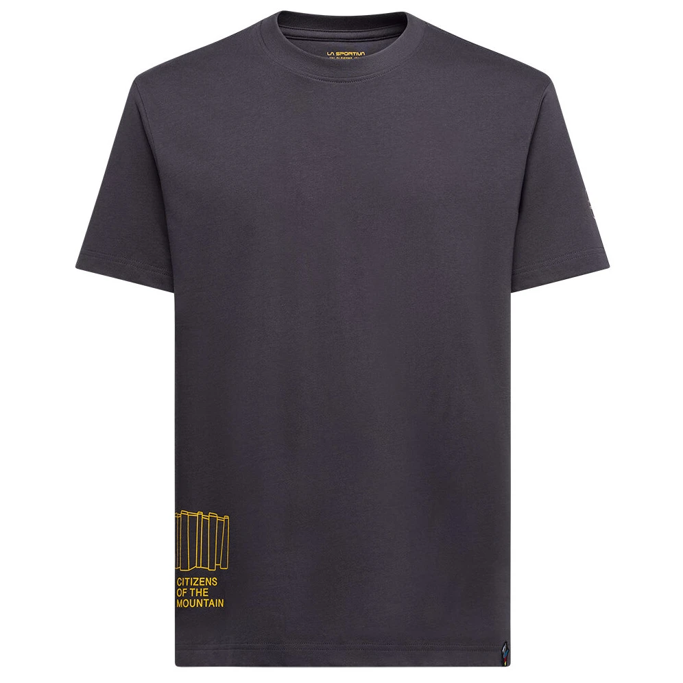 La Sportiva Cittadino della Montagna Uomo è una maglietta da uomo in cotone biologico, adatta per l'arrampicata su massi e l'uso quotidiano.