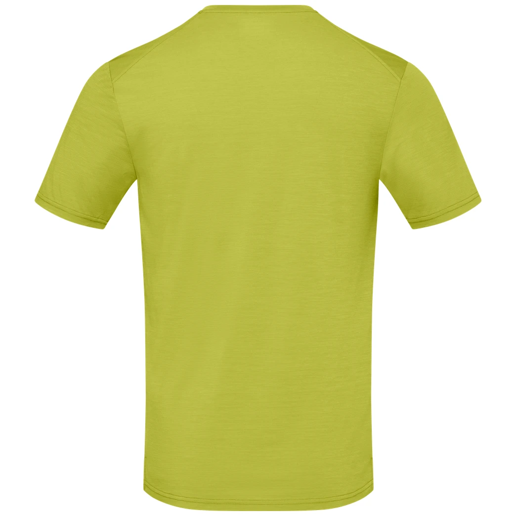 Il materiale è composto da una miscela di 47% lana merino, 33% poliestere riciclato e 20% poliestere. Grazie a questa combinazione, la maglietta è piacevole al tatto, allontana efficacemente l'umidità e si asciuga rapidamente, un vantaggio che apprezzerai con tempo variabile e in viaggio. La lana merino regola naturalmente la temperatura ed è resistente agli odori, rendendola adatta anche per eventi di più giorni con possibilità limitate di lavaggio. Il poliestere riciclato rappresenta inoltre una scelta più ecologica rispetto al materiale vergine.
