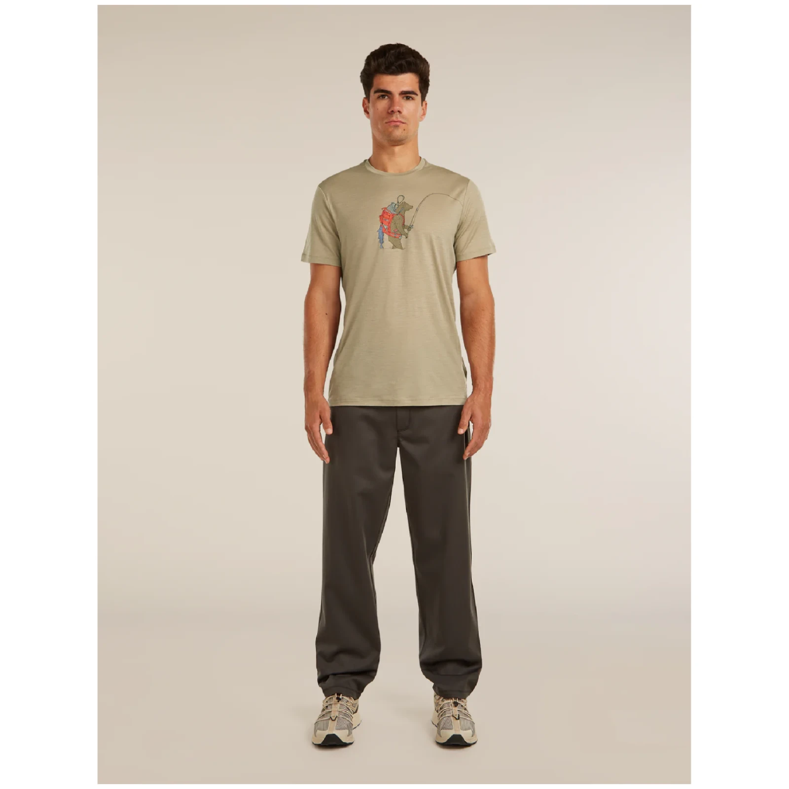 La vestibilità regular offre un equilibrio tra comfort e libertà di movimento. Le cuciture delle spalle spostate aiutano a ridurre lo sfregamento, ad esempio quando si indossa uno zaino. La grafica originale con il motivo dell'orso conferisce alla maglietta un aspetto personale, mentre il materiale naturale privo di fibre sintetiche sottolinea il suo carattere sostenibile.