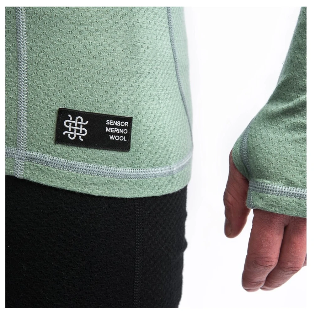 La maglietta funzionale da uomo Sensor Merino DF a maniche lunghe con cappuccio è realizzata in tessuto a maglia con una costruzione unica che combina seta di poliestere all'interno e una fine lana merinodalla Nuova Zelanda all'esterno. Grazie a questo, questa maglietta è ideale per lo sport in condizioni difficili, come l'escursionismo in alta montagna, lo sci alpinismo o l'alpinismo.