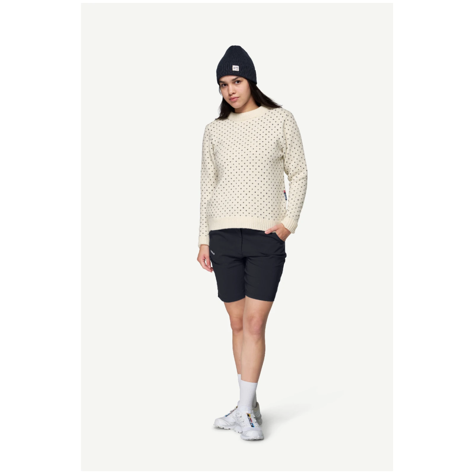 I minimalisti motivi norvegesi gli conferiscono un aspetto senza tempo, mentre la classica maglia liscia e le coste sui polsini e sull'orlo inferiore assicurano una vestibilità confortevole. La lana isola naturalmente, regola la temperatura e riscalda anche quando è umida, mantenendoti asciutto e comodo in qualsiasi condizione atmosferica.