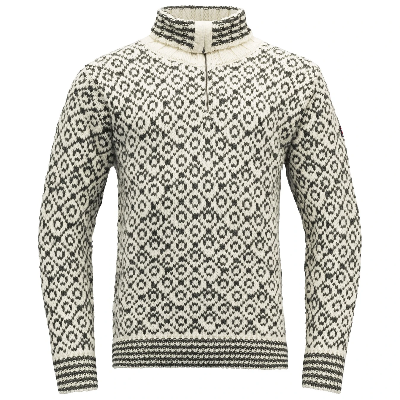 Il tradizionale maglione norvegese Devold Svalbard Wool Zip Neck in 100% pura lana con iconico motivo, collo alto con zip e massima resistenza per condizioni estreme.
