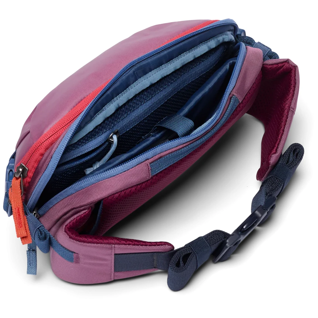 Il marsupio Allpa X 3L Hip Pack della marca Cotopaxi è uno dei membri più piccoli della collezione da viaggio Allpa e diventerà il tuo compagno indispensabile in viaggio. La borsa renna è realizzata con materiali riciclati al 100%, in particolare il guscio in nylon riciclato e la parte interna in poliestere riciclato. Se necessario, il rene può essere facilmente riposto nella tasca superiore dello zaino Allpa 35L o 42L.