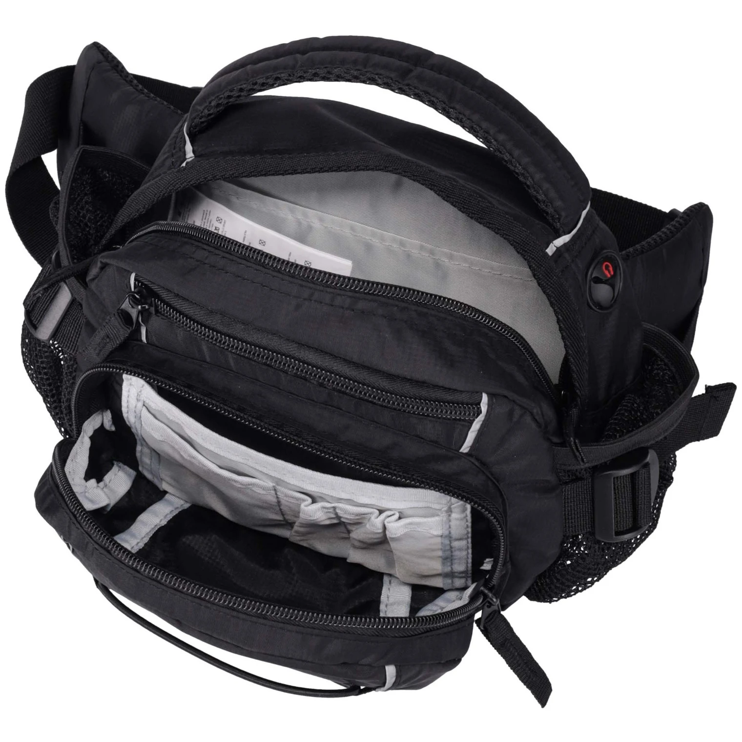 Il comfort durante l'uso è garantito dalla parte posteriore imbottita e dalla cintura regolabile in vita, grazie alla quale la borsa rimane saldamente in posizione anche durante movimenti più lunghi. Sulla tasca anteriore si trova un pratico cordino elastico con stopper, dove è possibile fissare, ad esempio, una giacca leggera. Gli elementi riflettenti aumentano la tua visibilità al crepuscolo o al buio, il che contribuisce alla sicurezza.