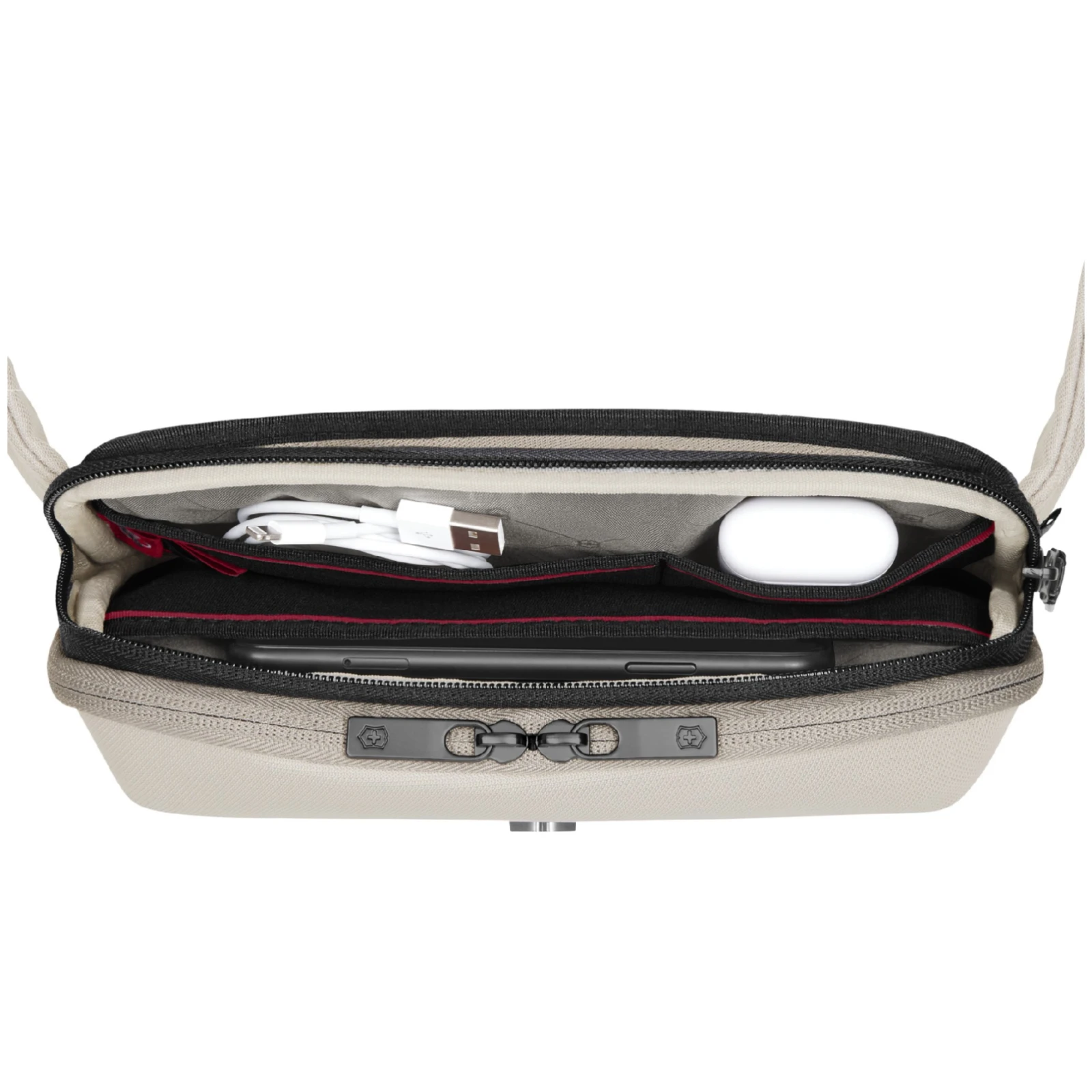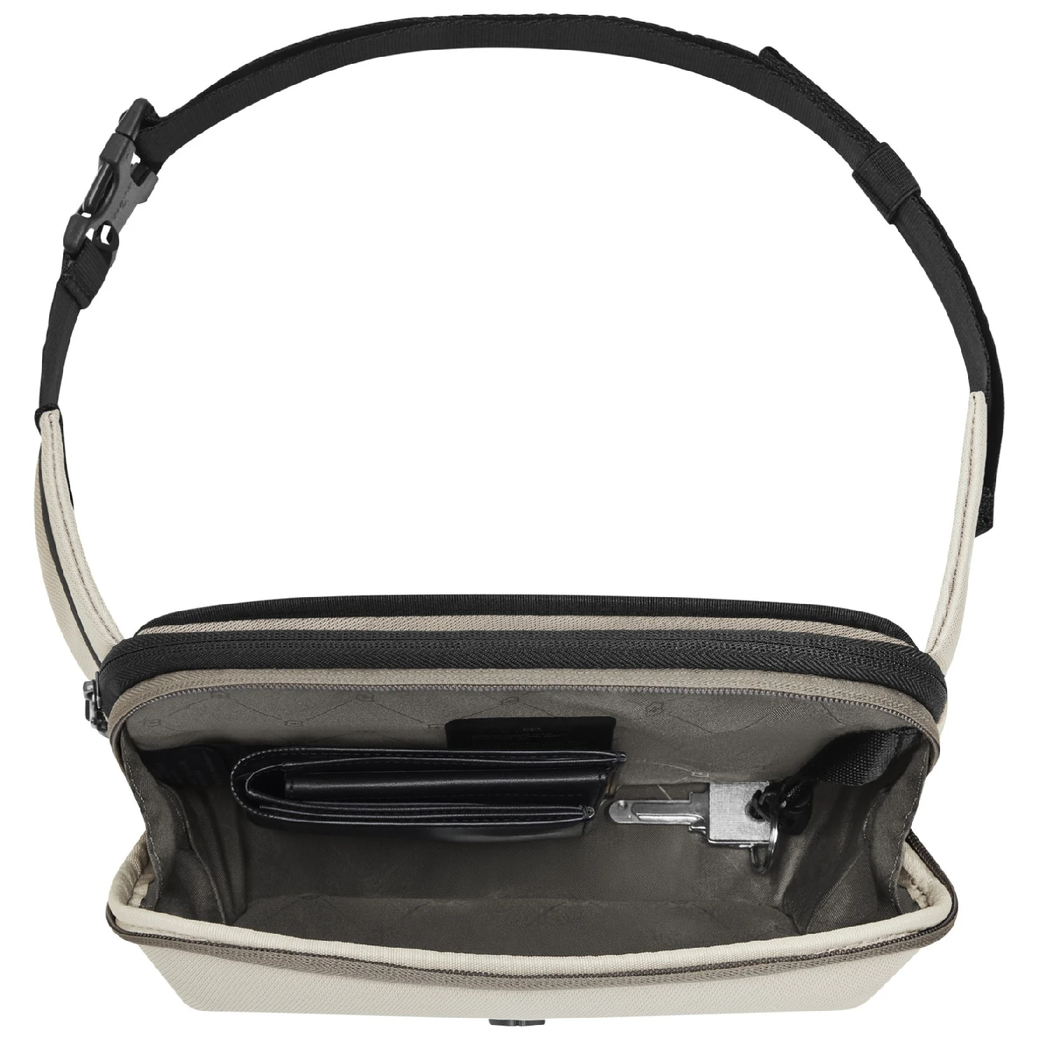 - tasche con scomparti organizzativi intelligenti, inclusa tasca posteriore nascosta, tasca per telefono e anello portachiavi