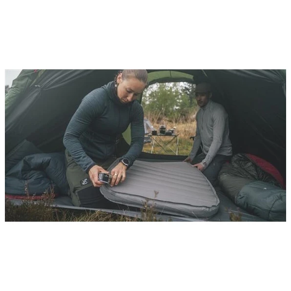 Il nucleo del materassino distribuisce perfettamente il peso del corpo e accelera il gonfiaggio e lo sgonfiaggio. I ritagli creano una serie di sacche d'aria arrotondate su ciascun lato, il che riduce il peso e aggiunge 2 cm di spessore per un maggiore comfort. Lo spessore del materasso, abbinato all'esclusiva forma 3D e al materiale piacevole, offre un comfort paragonabile a quello di dormire su un letto. Ottimizza l'uso dello spazio e allo stesso tempo elimina i punti freddi.