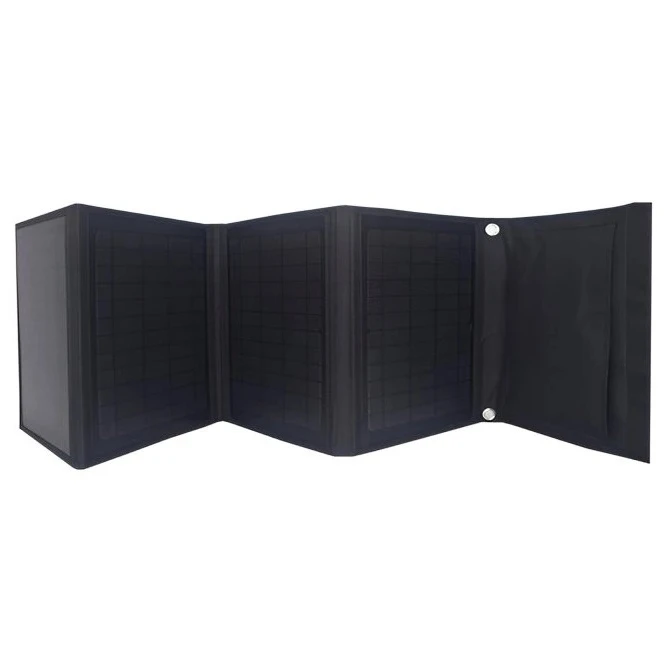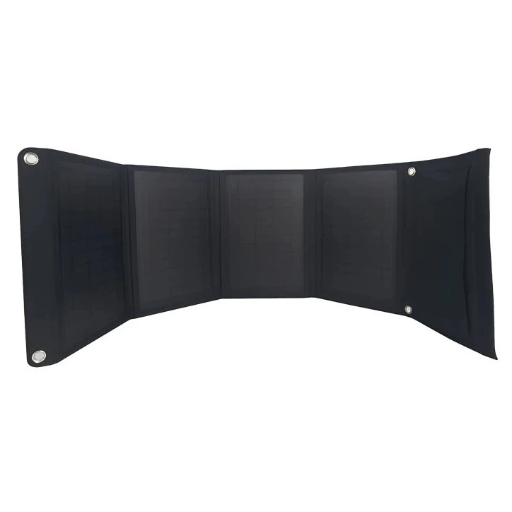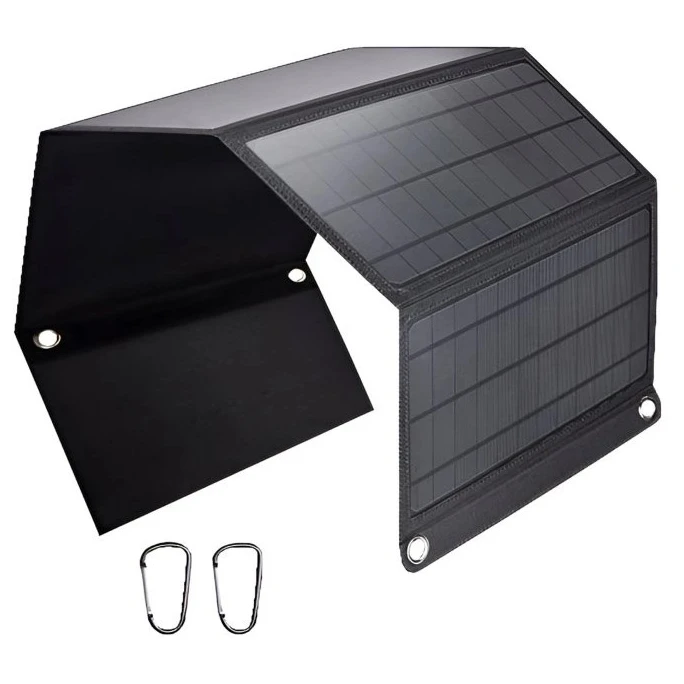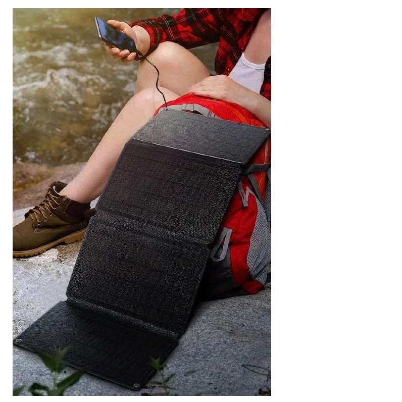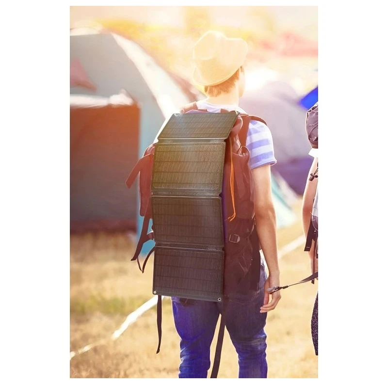 Il pannello è dotato di una custodia in poliestere impermeabile, occhielli per un facile fissaggio (zaino, bicicletta, tenda) e una funzione di avvio automatico della ricarica dopo aver collegato il dispositivo. Tre porte USB consentono di caricare la maggior parte dei dispositivi, tra cui Apple, Samsung, Huawei, Xiaomi e altri.