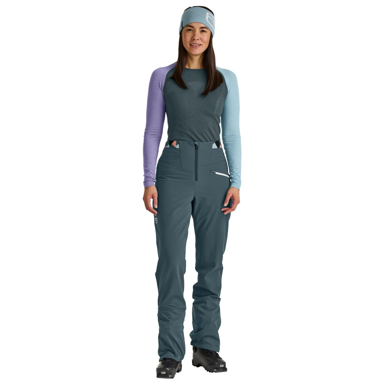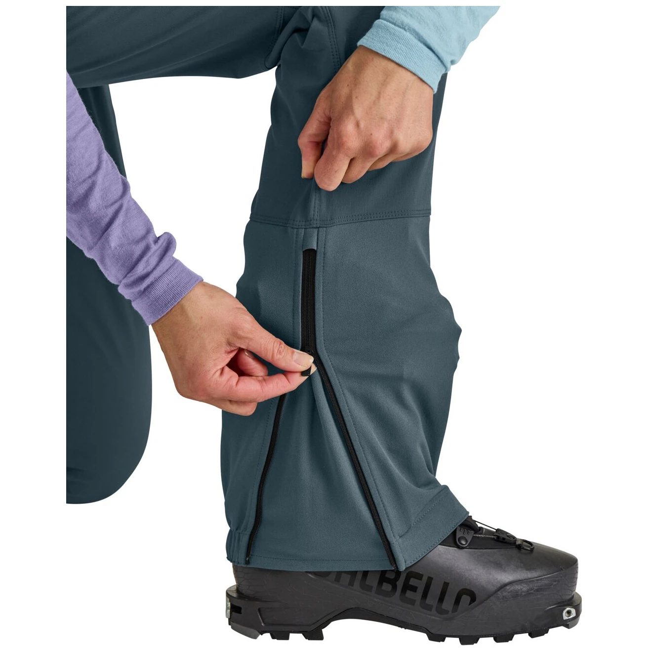 I pantaloni hanno un taglio sportivo e dettagli funzionali progettati per lo sci alpinismo: ginocchia preformate anatomicamente, protezione Schoeller® contro le lamine degli sci, polsini regolabili alle caviglie, regolazione con zip dei pantaloni per adattarsi alle calzature, vita alta con pannello elastico posteriore e pratica tasca sui fianchi, e il bordo in gomma silenzioso all'interno impedisce fondamentalmente lo spostamento dei pantaloni durante il movimento.
