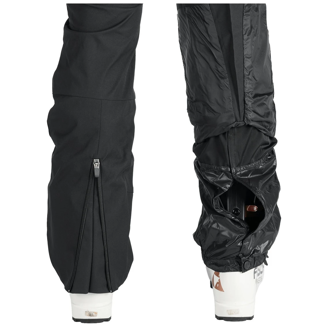 Le cuciture criticamente nastrate impediscono la penetrazione dell'umidità e la doppia cintura rialzata protegge i reni dal vento. Grazie alle ginocchia preformate e al materiale elastico, potrai godere di una totale libertà di movimento anche durante le uscite più impegnative. L'orlo inferiore dei pantaloni è rinforzato contro i tagli, dotato di cerniere e ghette elastiche interne con bordo antiscivolo, che impediscono l'ingresso della neve. Non mancano due tasche frontali con cerniera e cordini rimovibili per un perfetto adattamento alla figura.