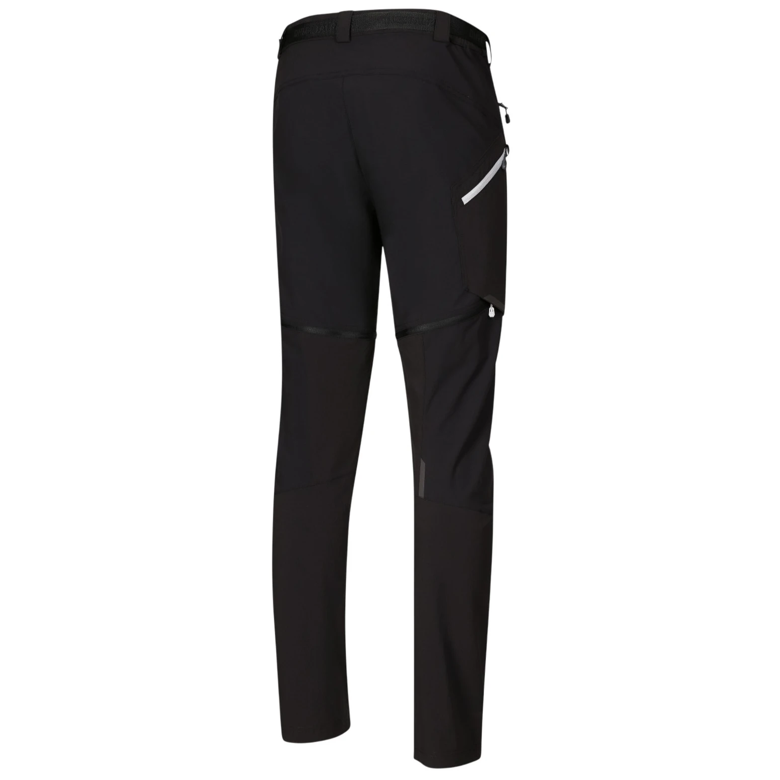 I pantaloni hanno una comoda vita leggermente elasticizzata, parzialmente elasticizzata, con regolazione tramite cintura con fibbia. Per riporre piccoli oggetti, ci sono due tasche anteriori con zip e una tasca laterale.