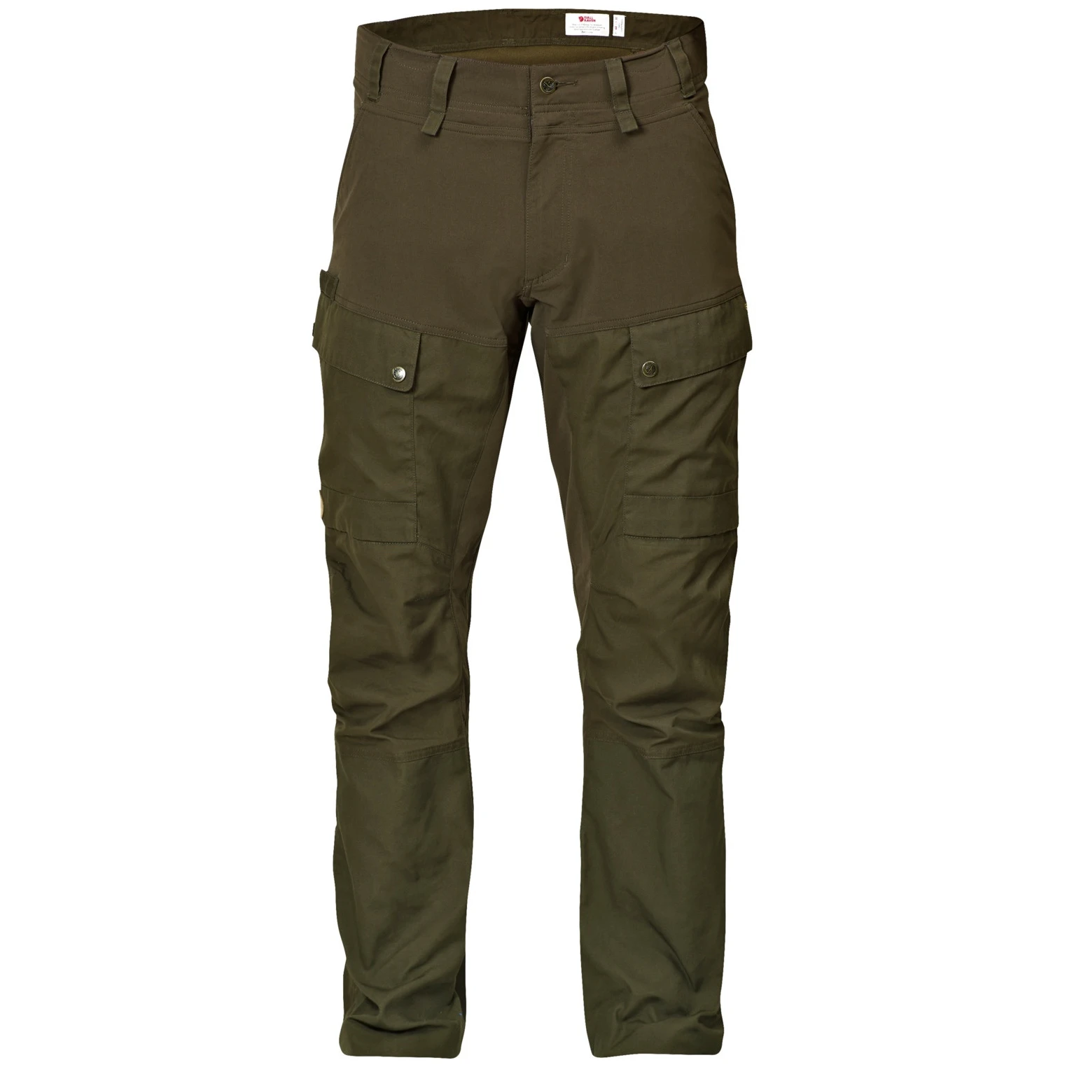 I pantaloni da uomo Lappland Hybrid Trousers M di Fjällräven sono la scelta ideale per attività outdoor impegnative, in particolare la caccia attiva. La parte principale è realizzata in materiale elasticizzato che garantisce la massima libertà di movimento, mentre il G-1000 Silent Eco (una miscela di poliestere riciclato e cotone organico) è utilizzato nelle aree sollecitate come cosce, ginocchia, parte posteriore e interno gamba.