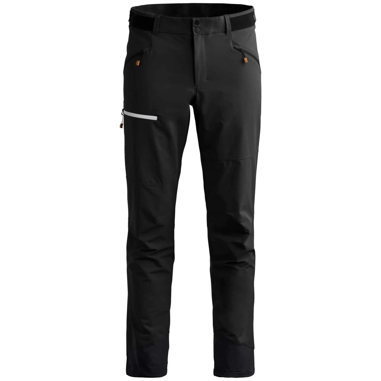 I dettagli pratici sottolineano la funzionalità dei pantaloni: vestibilità regular aderente, vita e orlo inferiore regolabili per un adattamento preciso, due tasche sui fianchi e una sulla coscia per un facile accesso agli oggetti, robusti polsini alle caviglie con gancio per i lacci che impedisce l'accumulo di sassolini o neve e taglio ergonomico per la massima libertà di movimento in terreno alpino.