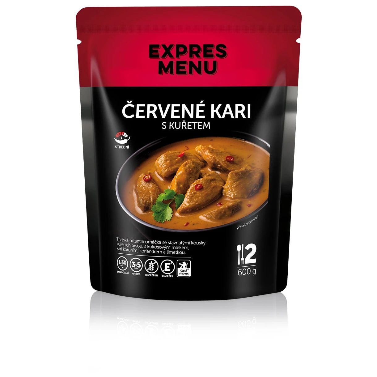 I cibi pronti sterilizzati di Expres Menu, realizzati senza conservanti e solo con i migliori ingredienti, si sbizzarriscono in una salsa piccante con succosi pezzi di petto di pollo, latte di cocco, curry, coriandolo e lime.