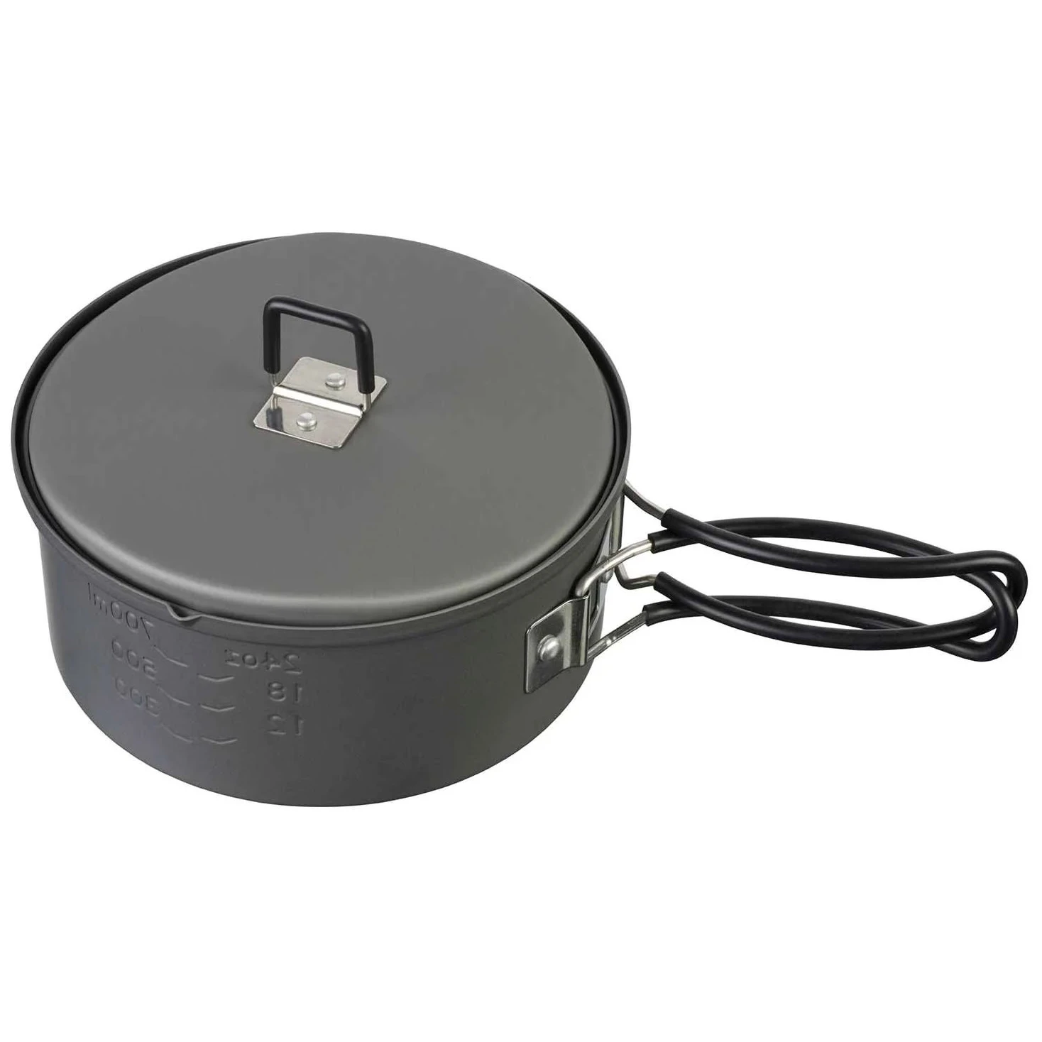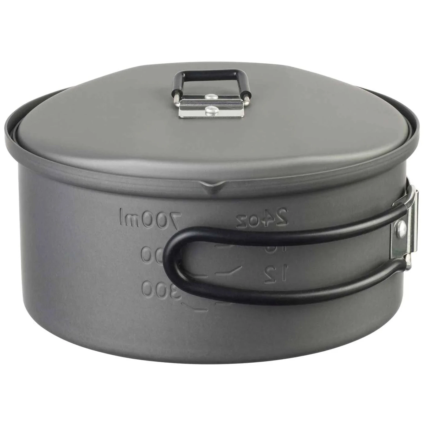 La scala all'interno della pentola indica il volume in ml e oz. La fornitura comprende anche una pratica borsa a rete che tiene unita la pentola durante il trasporto. L'interno della pentola da campeggio offre ulteriore spazio per riporre oggetti durante il viaggio, ad esempio alimenti confezionati o combustibile solido.