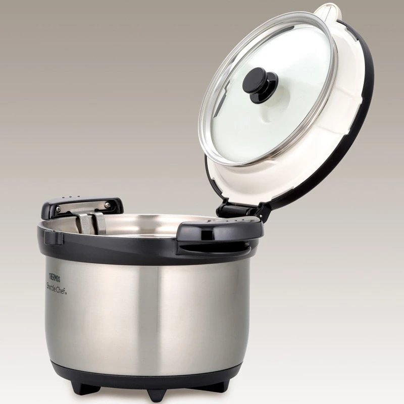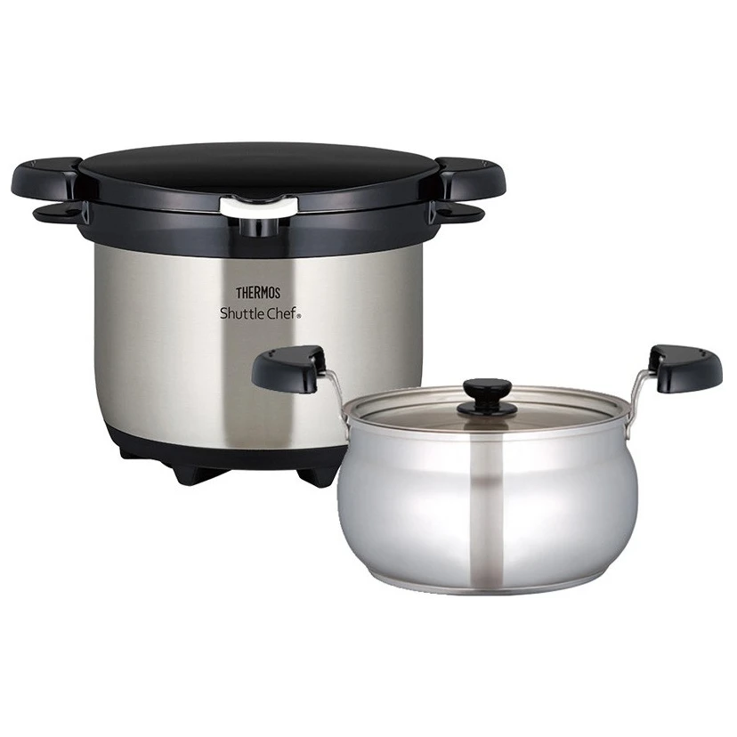 Thermos Shuttle Chef è una pentola termica con isolamento sottovuoto progettata per una cottura economica, sana e comoda senza la necessità di una supervisione costante. È stato introdotto in Giappone già nel 1989 e da allora ha guadagnato una grande popolarità tra gli appassionati di outdoor per la sua facilità nel preparare pasti in baite, campeggi o riunioni familiari in giardino. È ottimo anche per la normale cottura in casa. Il suo principio si basa sul breve riscaldamento del cibo su un fornello normale e sulla successiva cottura mantenendo la temperatura interna nel contenitore isolato, senza ulteriore apporto di energia.
