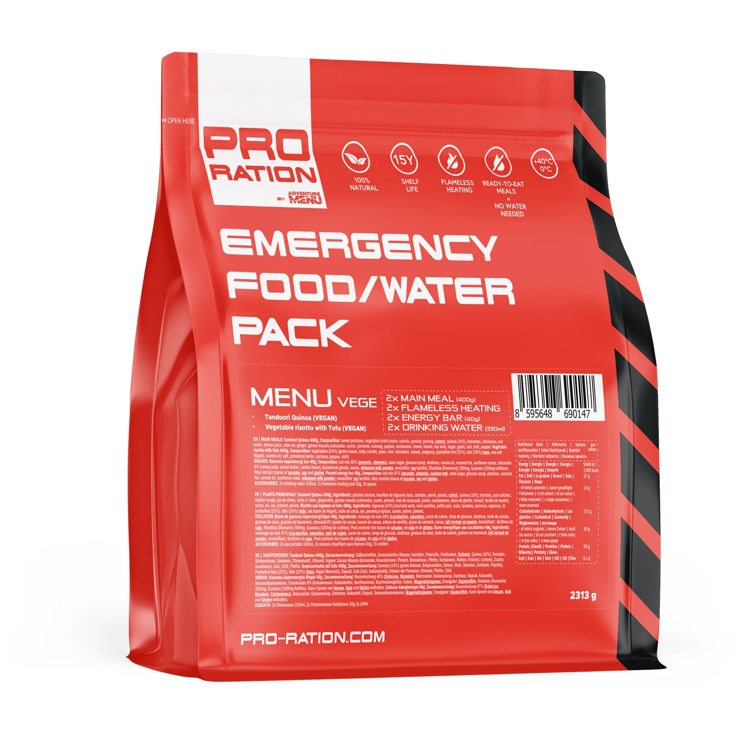 PRO-RATION Emergency Pack MENU è il risultato di oltre due anni di collaborazione con le squadre di soccorso ceche. Questo pacchetto compatto ti assicura cibo e acqua potabile di qualità per i momenti critici, con una durata fino a 15 anni per il cibo e 50 anni per l'acqua.