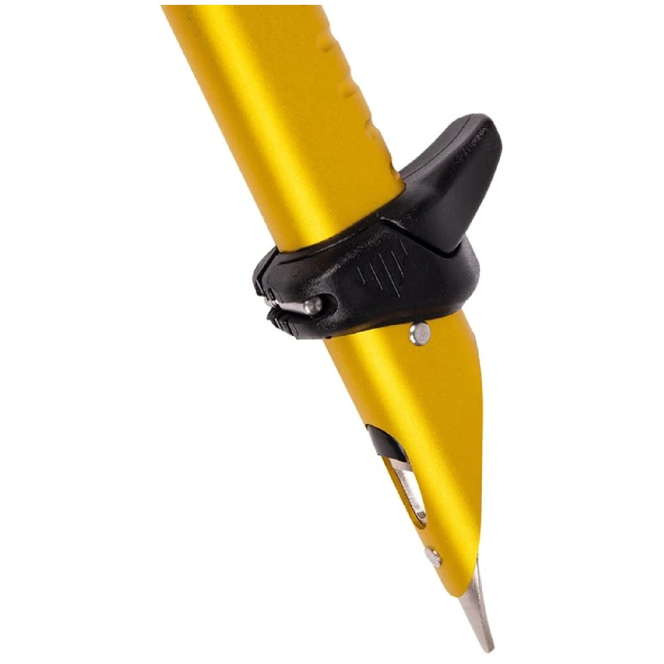Sul fondo dell'asta è presente un tappo in nylon, che impedisce l'accumulo di neve. L'impugnatura antiscivolo con scanalature migliora la presa. La piccozza può essere dotata di un cinturino (non incluso nella confezione).