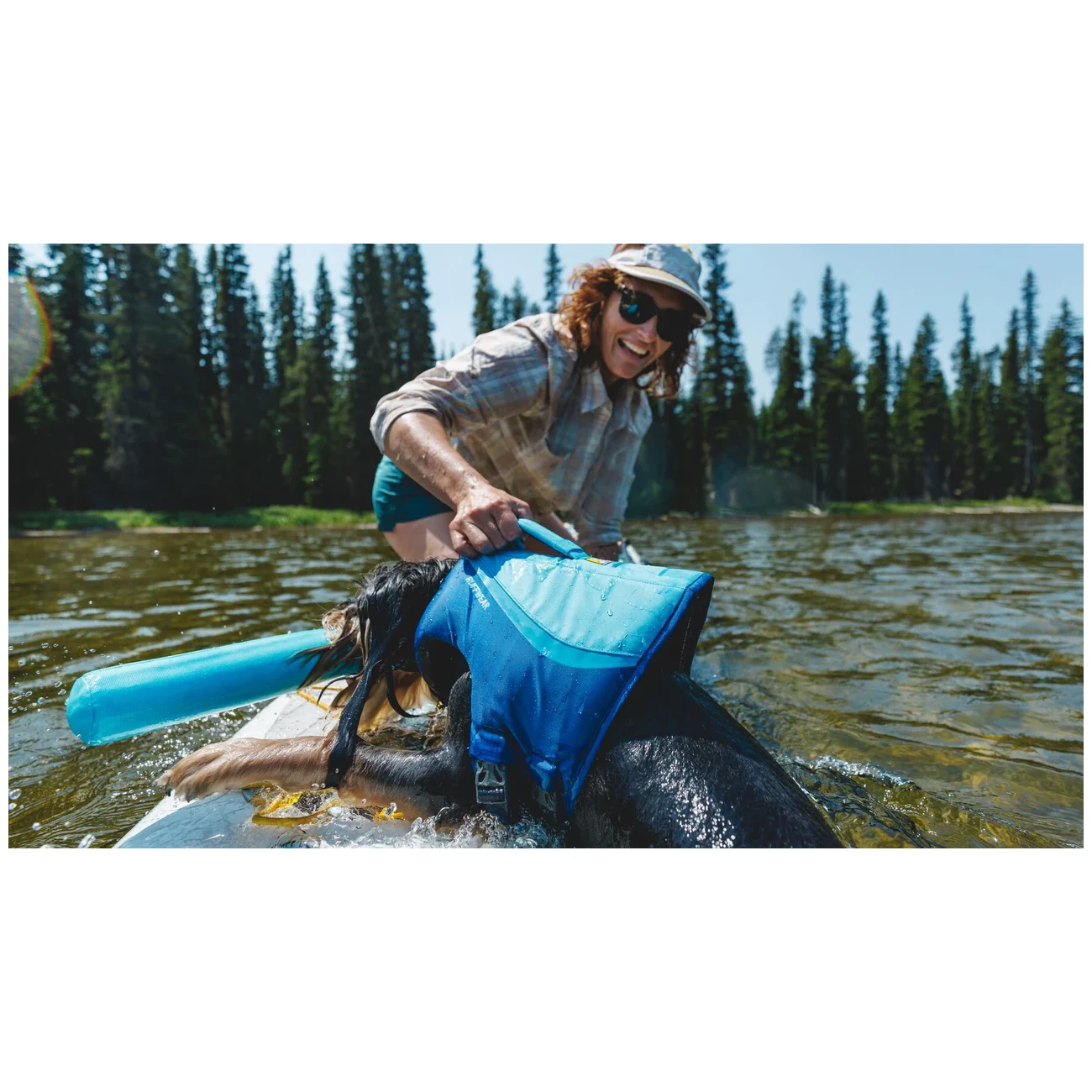 È realizzato in resistente poliestere balistico. All'interno ci sono pannelli in schiuma in PVC posizionati strategicamente, che favoriscono una posizione di nuoto naturale senza limitare il cane. La pettorina si allaccia tramite fibbie di plastica sul lato. La regolazione elastica intorno al collo permette alla pettorina di adattarsi a diverse taglie di cani. Sulla parte superiore è presente una maniglia a basso profilo, che ti consente di sollevare il cane in barca o sul paddleboard. La pettorina ha anche un anello a D in plastica, a cui è possibile agganciare il guinzaglio. Glielementi riflettenti aumentano la visibilità. Sul collo è presente un passante per fissare la luceRuffwear The Beacon™ Safety Light.