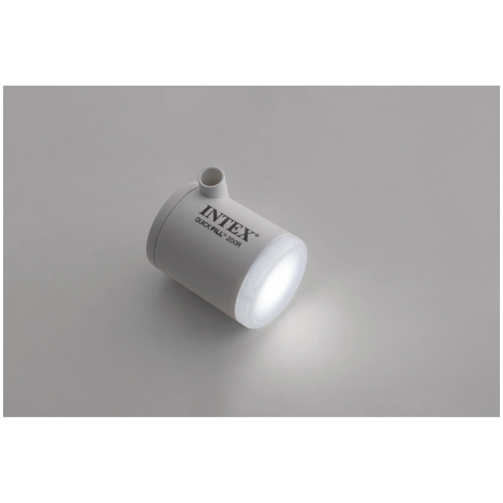 Intex Quickfill USB200R è una piccola pompa elettrica portatile con ricarica USB e luce LED, ideale per piccoli gonfiabili a casa e in campeggio.