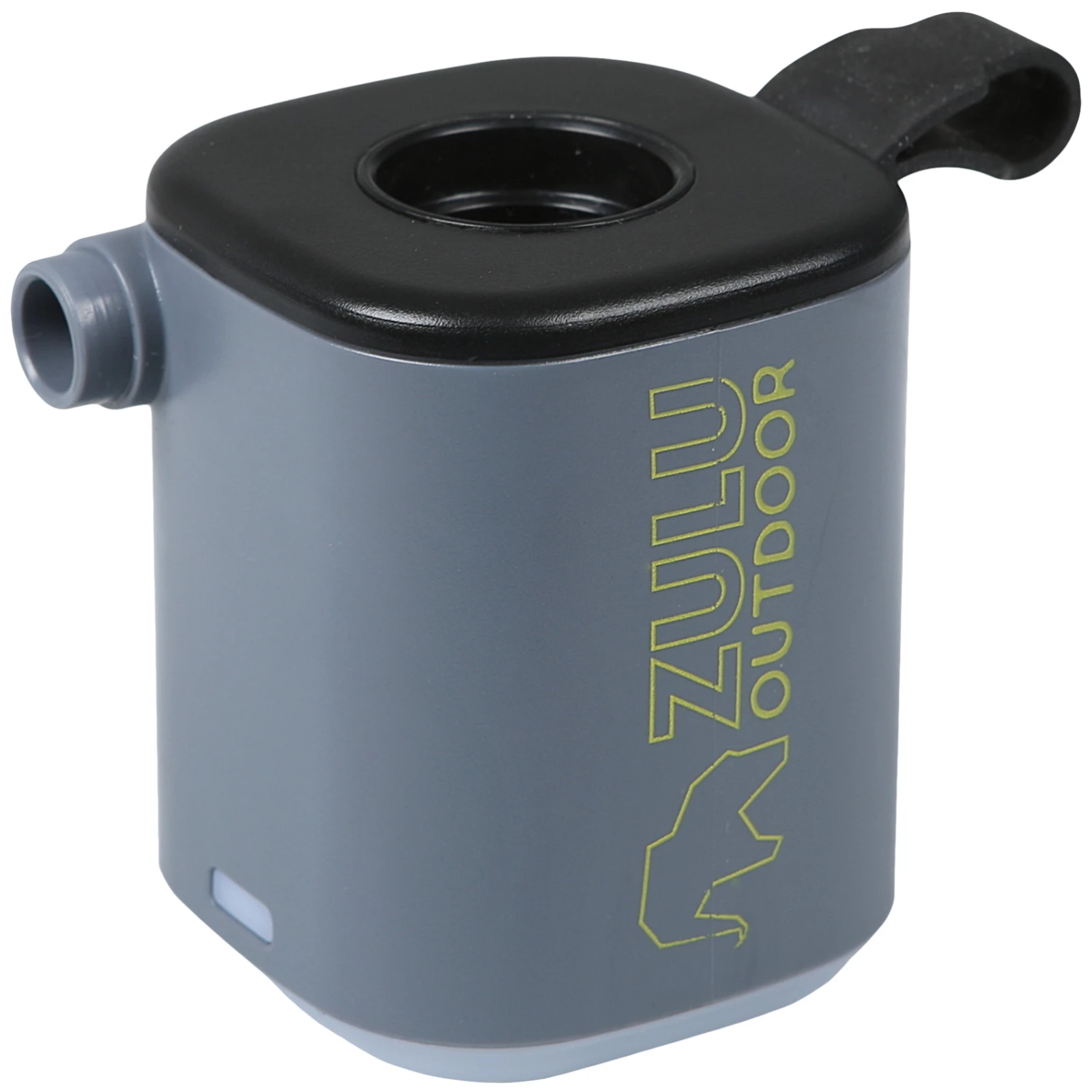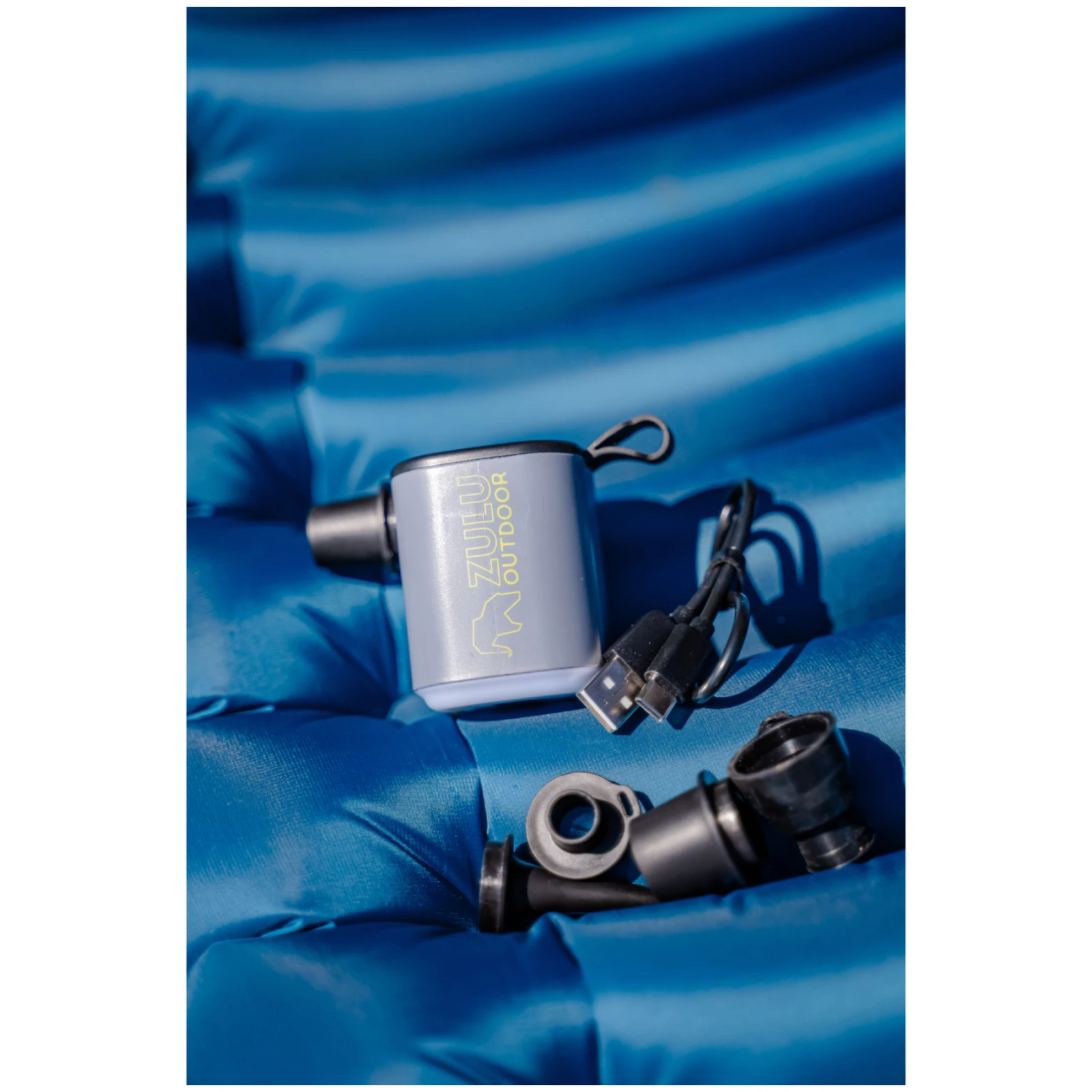 La pompa di gonfiaggio Zulu Little Rocket è particolarmente utile in viaggio e in luoghi dove non si ha accesso all'auto o a una presa elettrica. La pompa si ricarica facilmente e rapidamente tramite il cavo USB C incluso nella confezione. Nella confezione troverai 5 ugelli con cui potrai gonfiare materassini, lettini e materassi.