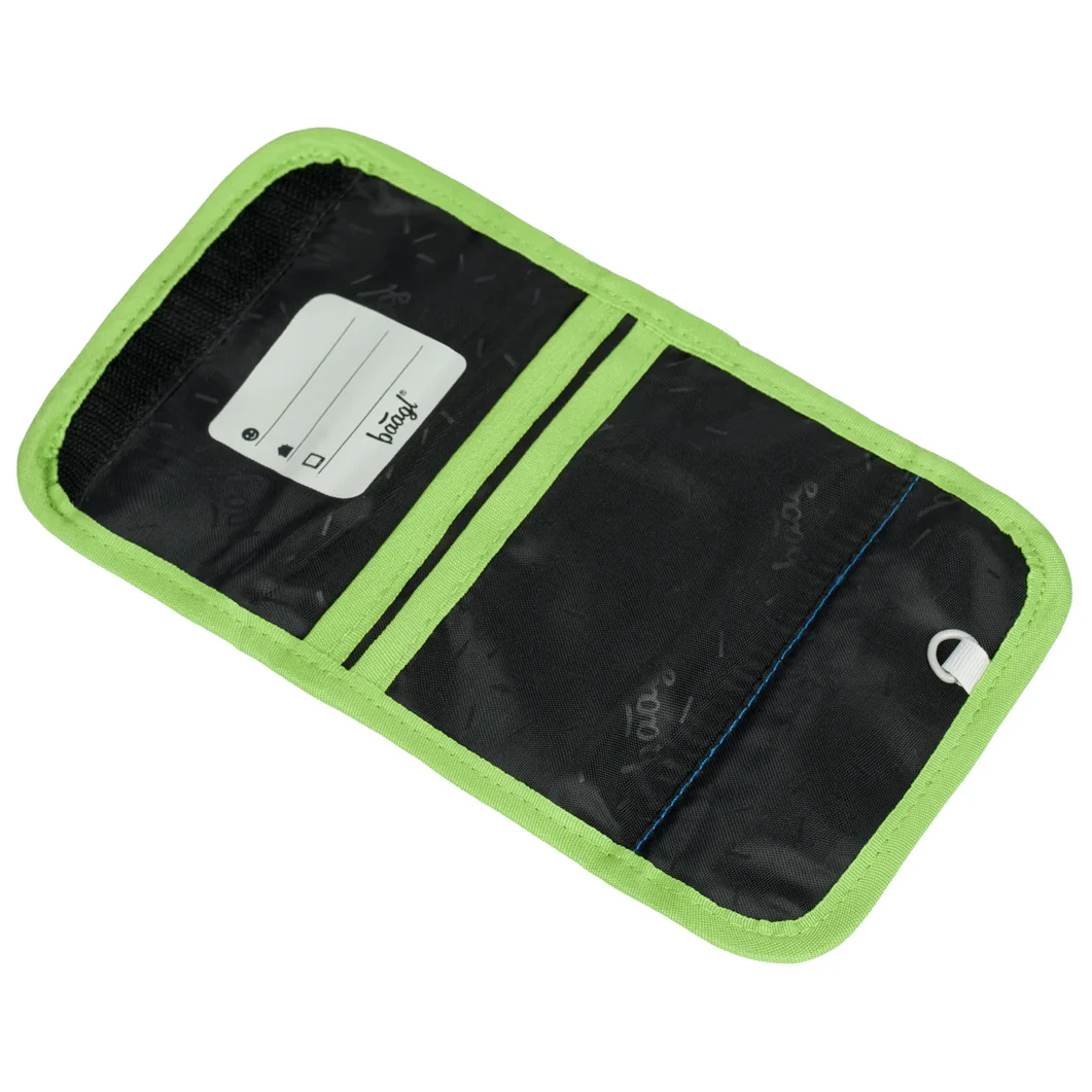 Il portafoglio da collo per bambini di Baagl ha un cordino regolabile con chiusura di sicurezza grazie al quale i bambini possono appenderlo al collo e non perderlo. All'interno c'è spazio sufficiente per le piccole monete in una tasca separata, un chip, la chiave dell'armadietto e, in più, un'etichetta con il nome del bambino. Il portafoglio è realizzato in materiale riciclato resistente e si chiude con velcro.