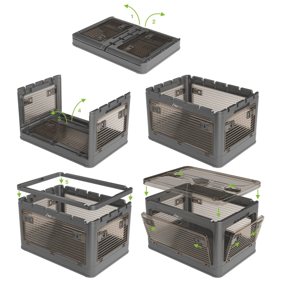 Contenitore pieghevole Yolco FB40 da 40 litri con ruote. Aiuto leggero, pratico e salvaspazio per viaggi, campeggio e organizzazione domestica quotidiana.