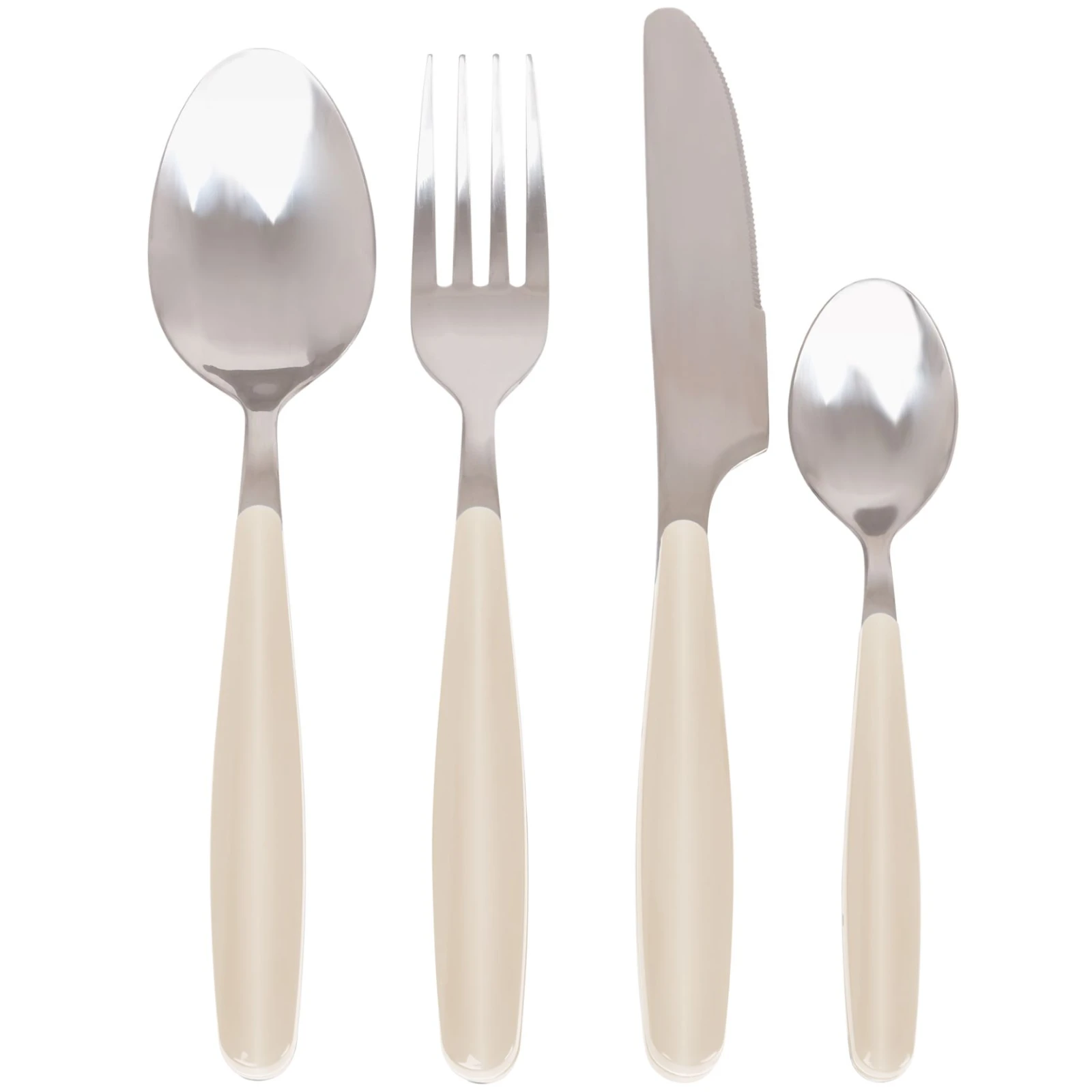 set di posate Brunner Sapora da 16 pezzi dal design moderno, con anima in solido acciaio inox e manici in plastica ben sagomati. Adatto sia per la casa che per il campeggio.