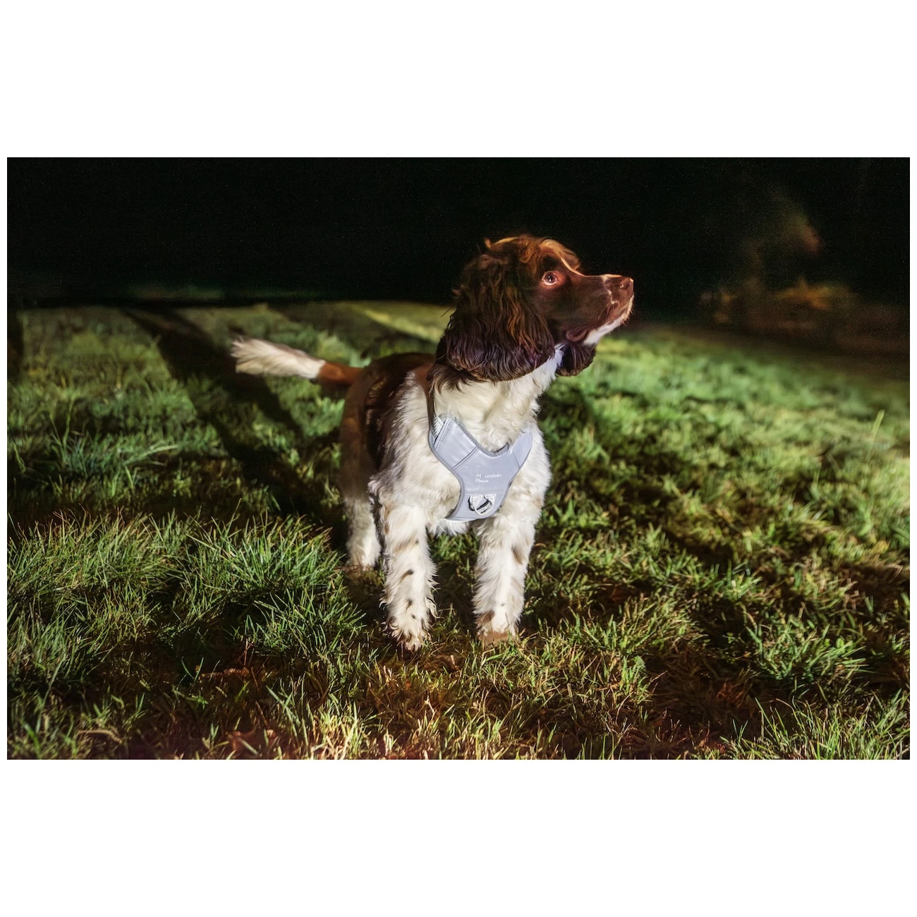 È adatta per essere indossata tutto il giorno, poiché ha spallacci larghi con morbida imbottitura intorno al collo e al petto, che distribuiscono perfettamente il peso del cane e la sua trazione. Il materiale è riflettente su tutti i lati, aumentando significativamente la visibilità del cane in condizioni di scarsa illuminazione.