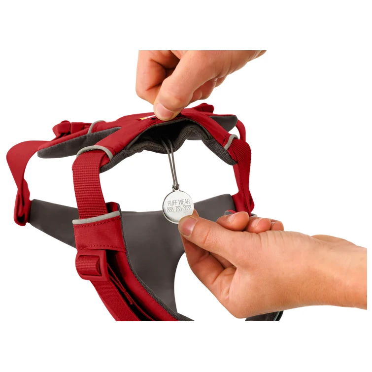 L'imbracatura è completamente regolabile in quattro punti tramite fibbie in plastica, adattandosi così a tutte le forme e dimensioni dei corpi dei cani. Ciò la rende adatta anche per cuccioli in rapida crescita. Il materiale interno è resistente allo sporco e ai peli. I due punti di attacco per il guinzaglio sono molto versatili. L'anello a D in alluminio sul retro è completato da un anello rinforzato sul petto, progettato per i cani che tirano. L'imbracatura ha un bordo riflettente per una migliore visibilità in condizioni di scarsa illuminazione e sul manico c'è un punto per il fissaggio della luce Ruffwear The Beacon™ Safety Light.