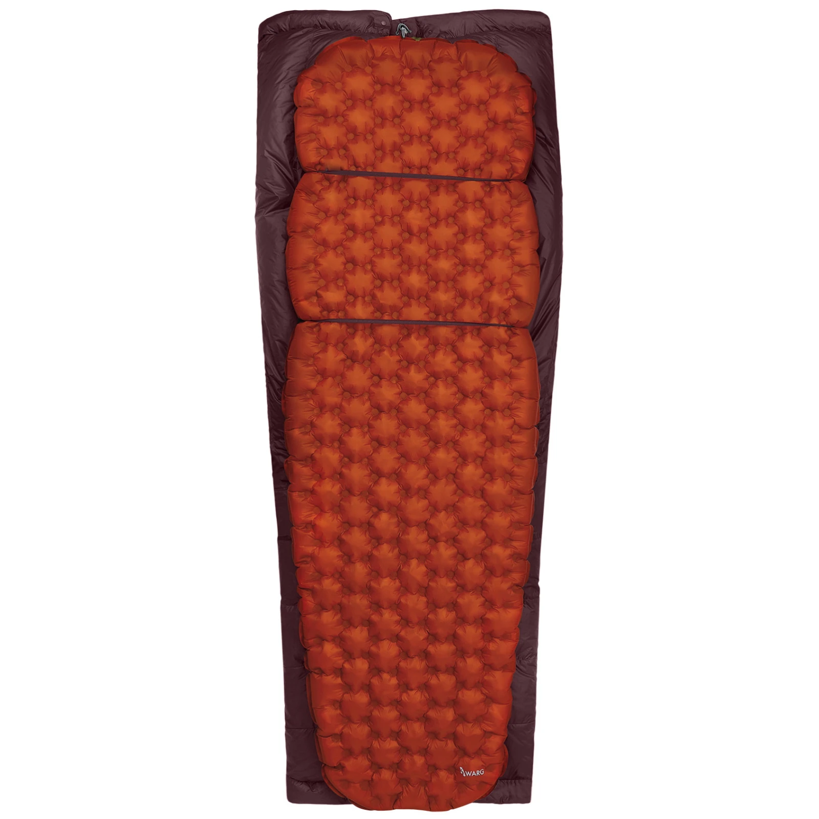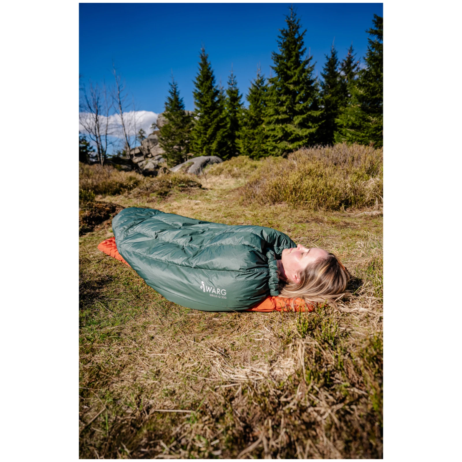 Il quilt leggero in piuma Warg Sirius Q 300 è progettato per condizioni difficili, dove l'attenzione è rivolta al peso ridotto, alle buone proprietà isolanti e alla compattezza. Il quilt è riempito con piuma d'anatra di alta qualità con un rapporto di 90/10 (90% piumino e 10% piuma). La piuma ha un potere di riempimento superiore alla media di 800 Cuin e grazie a questo garantisce un'elevata capacità termica anche con un volume ridotto.