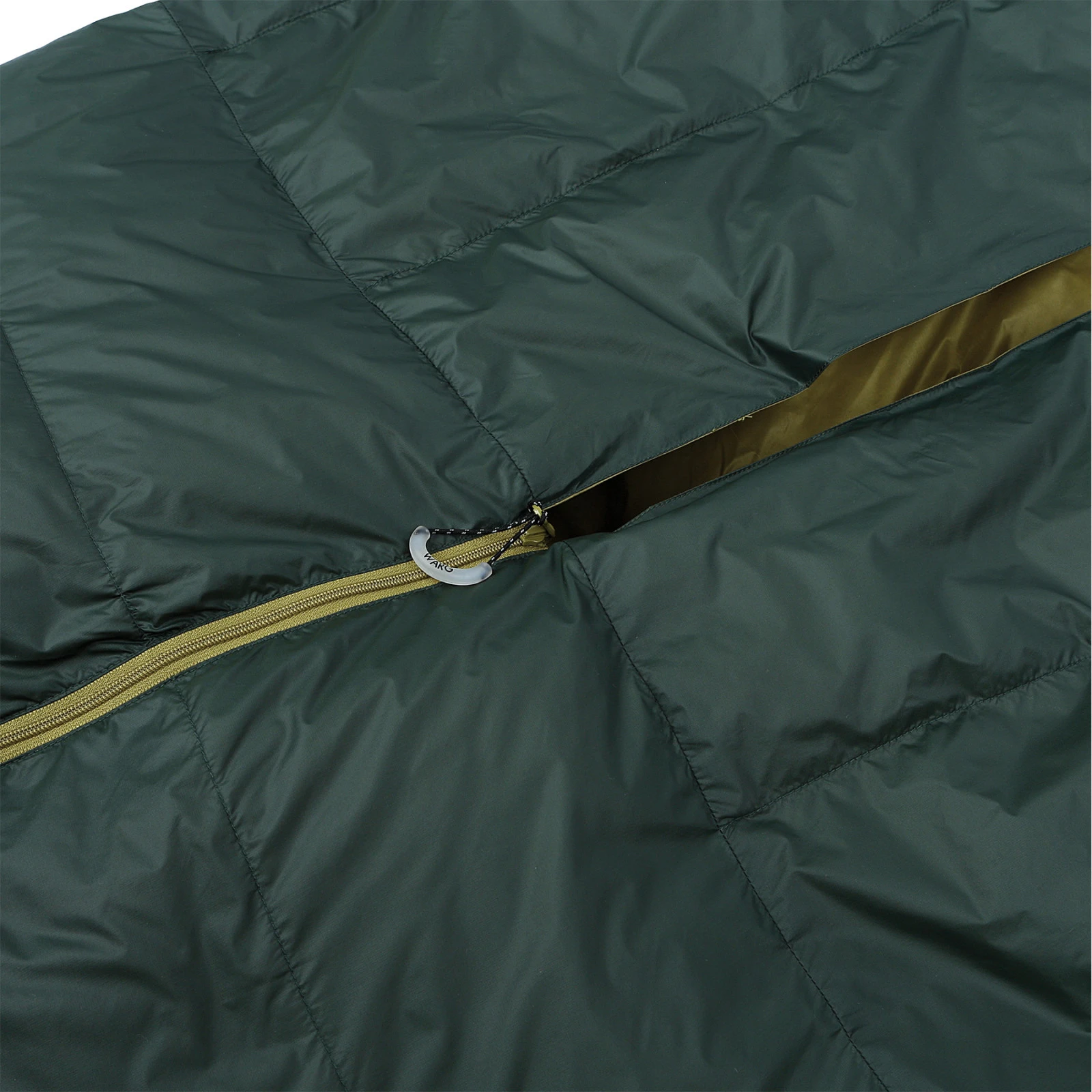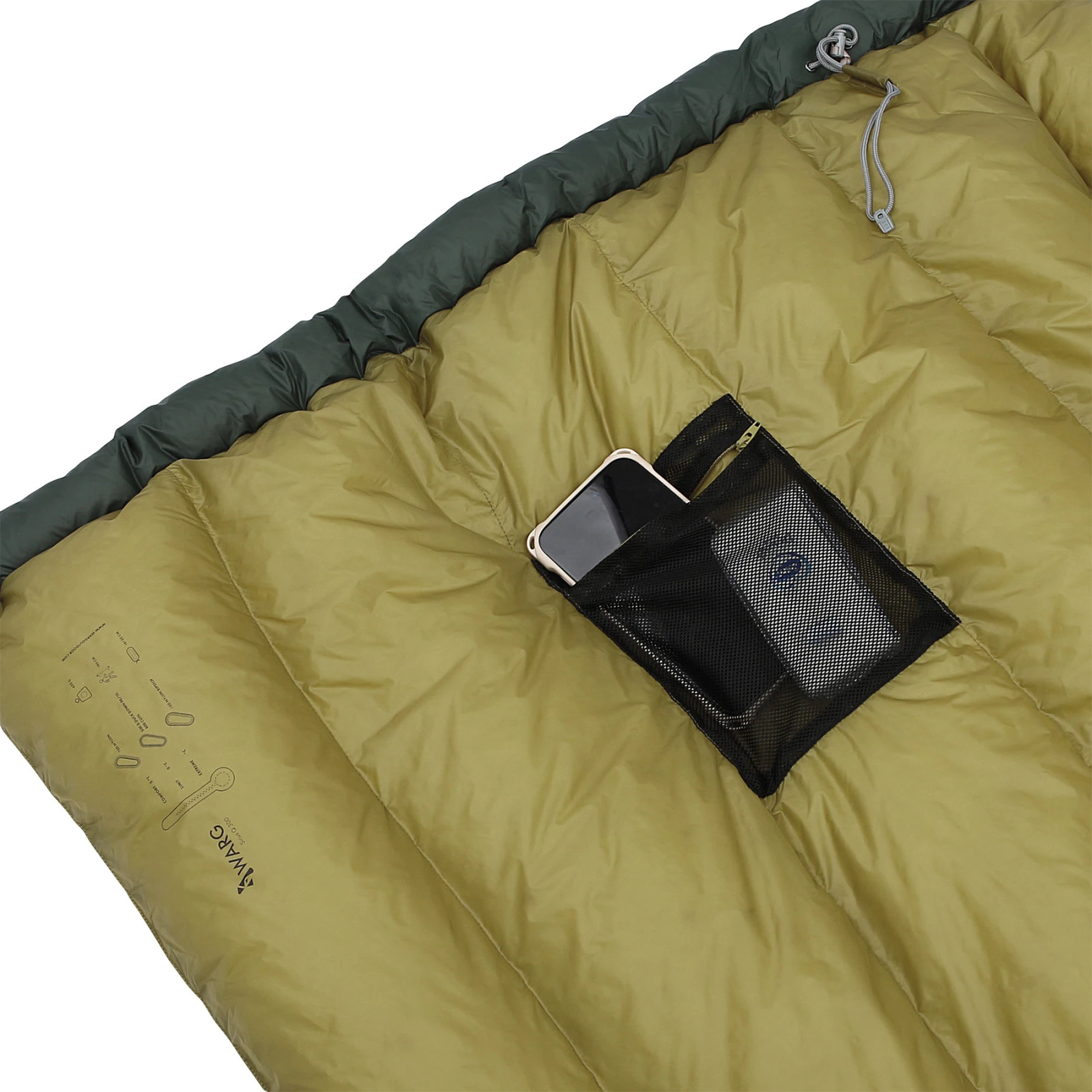 La trapunta leggera in piuma Warg Sirius Q 500 è progettata per condizioni impegnative, dove si pone l'accento su peso ridotto, buone proprietà isolanti e comprimibilità compatta. Il quilt è riempito con piuma d'anatra di alta qualità con un rapporto di 90/10 (90% piumino e 10% piuma). La piuma ha un potere di riempimento superiore alla media di 800 Cuin e grazie a questo garantisce un'elevata capacità termica anche con un volume ridotto.