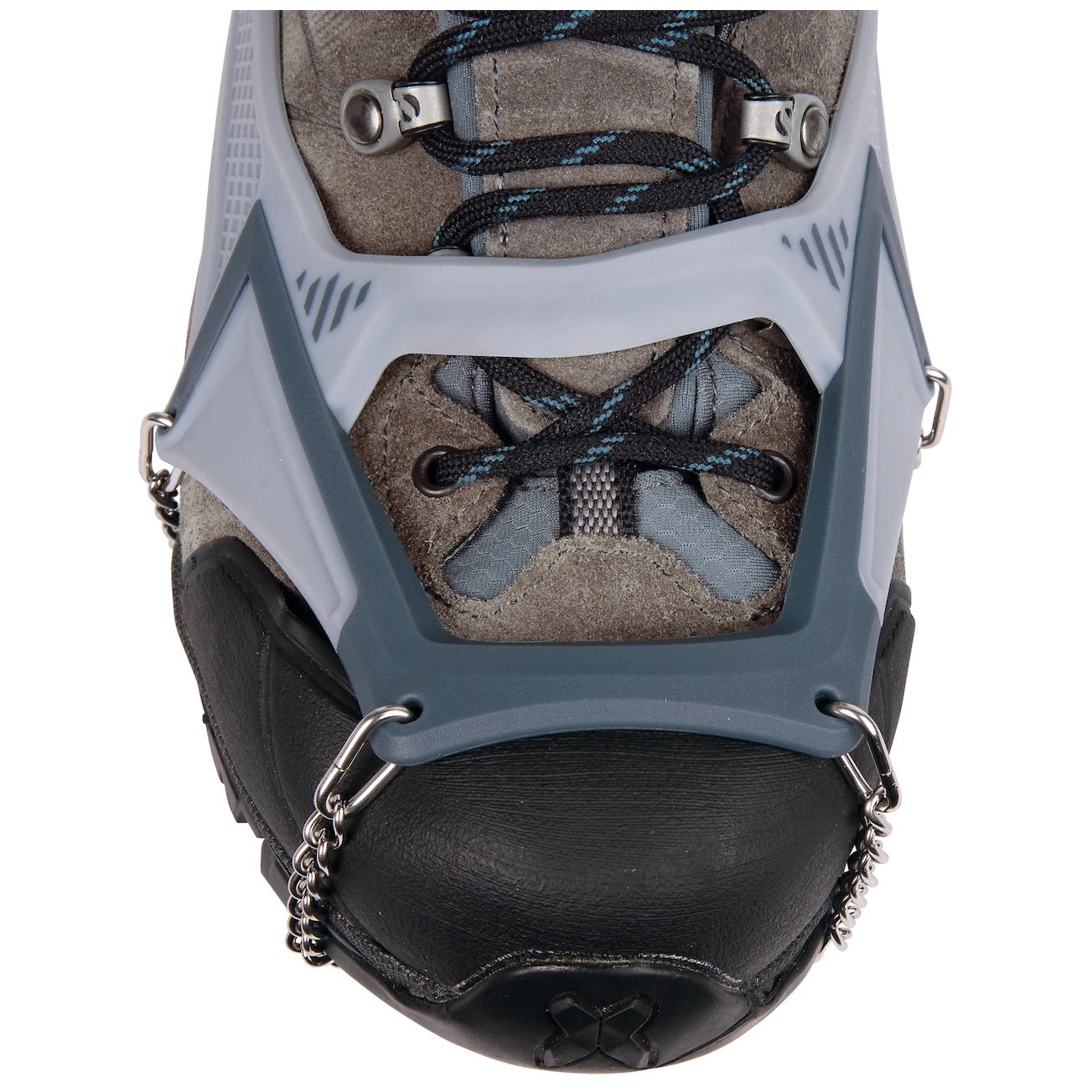 La sicurezza è garantita da sedici punte stabili da 15 mm in acciaio inossidabile, disposte per la massima trazione e aderenza laterale. Allo stesso tempo, questo sistema riduce al minimo la quantità di metallo per diminuire il peso. L'innovativo sistema di fissaggio 3D garantisce una vestibilità perfetta e un'assoluta stabilità sulla scarpa. La doppia parte anteriore articolata si adatta bene alle scarpe e al terreno. La confezione include una pratica custodia che protegge le punte e le altre attrezzature.