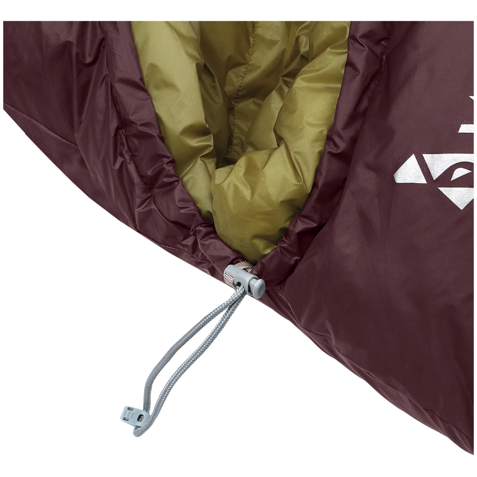 Il materiale esterno è realizzato in nylon 15D ultraleggero che, grazie al trattamento Ripstop, è sufficientemente resistente e durevole all'abrasione, pur rimanendo traspirante e piacevole al tatto. Il tessuto esterno è dotato di trattamento DWR privo di PFC, che aiuta a respingere l'acqua e protegge l'imbottitura dall'umidità. Per il massimo comfort, la struttura nella zona dei piedi è anatomicamente sagomata (Footbox) e offre prestazioni termiche superiori rispetto al taglio classico. Il sacco a pelo è dotato di un piacevole cappuccio dal taglio anatomico e di un colletto isolante rimovibile intorno al collo.