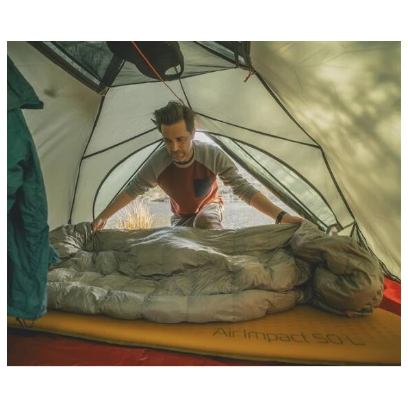 Combina un'imbottitura in piuma d'anatra da 600 cuin con un rapporto di 75/25 e un materiale in poliestere MicroThermo Ball. Insieme, questi materiali sono perfettamente isolanti, leggeri e altamente pieghevoli. Allo stesso tempo, questo sacco a pelo è ideale per le condizioni di umidità, perché la fibra sintetica è posizionata strategicamente dove è più necessaria. Grazie alla sua struttura ibrida, il sacco a pelo si asciuga perfettamente. Il materiale esterno in nylon ripstop è robusto e resistente ai danni meccanici. La fodera allontana perfettamente l'umidità dal corpo, aumentando il comfort.