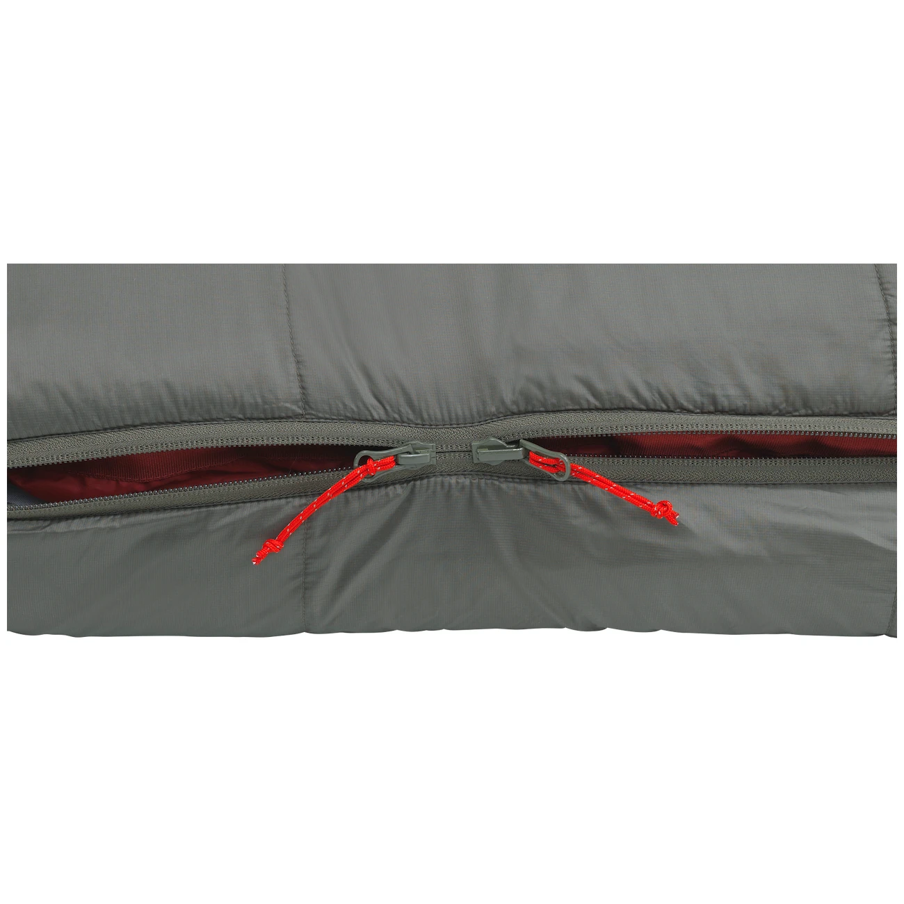 Naturalmente è presente una cerniera YKK a due vie, che può resistere all'avanti e indietro per tutta la durata del sacco a pelo. La cerniera è dotata di una fascia di copertura contro la perdita di calore e di protezione contro gli strappi. È possibile scegliere il lato della cerniera in modo da unire i sacchi a pelo. Nel caso di questo sacco a pelo, si tratta della cerniera sinistra.