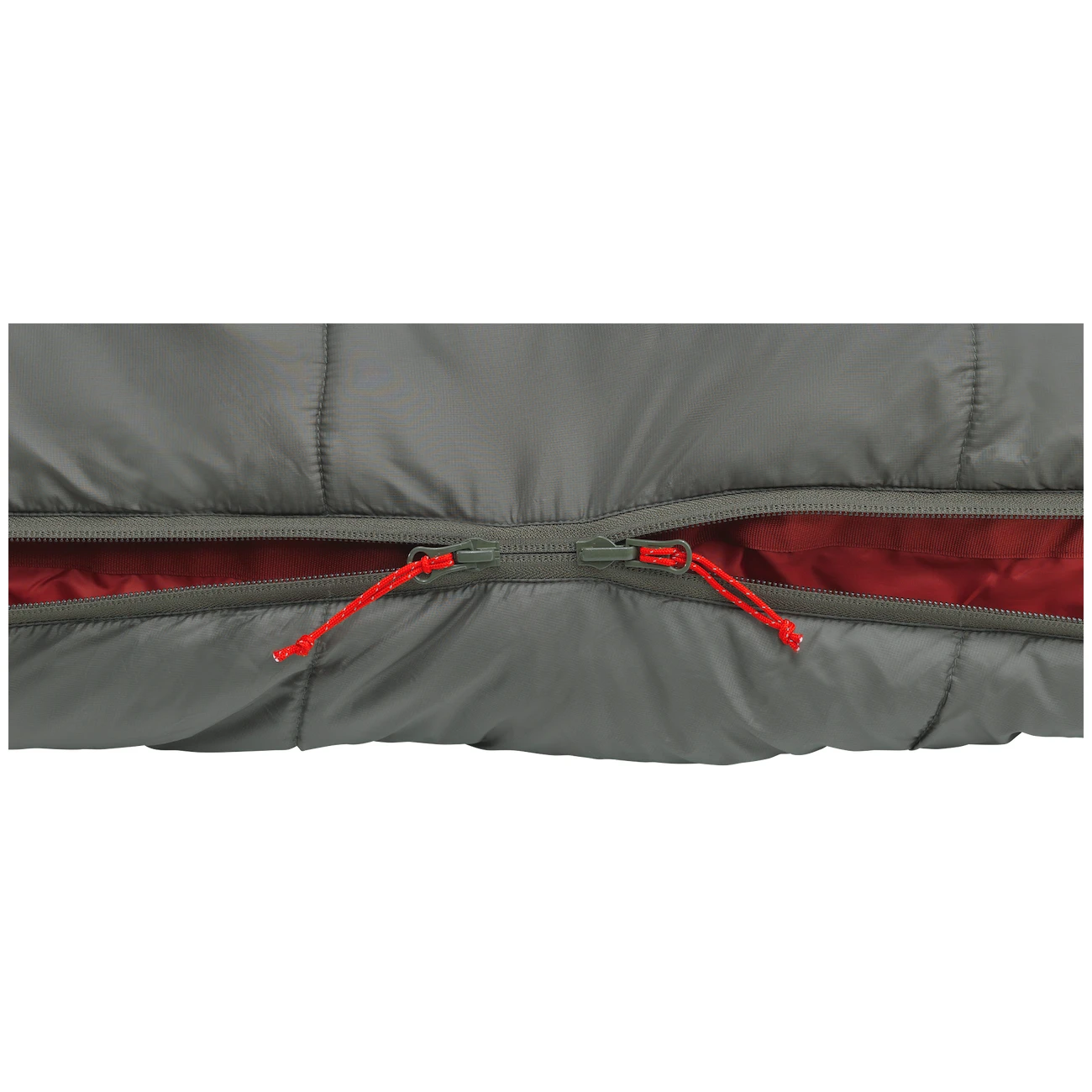 Naturalmente è presente una cerniera YKK a due vie, che può resistere all'avanti e indietro per tutta la durata del sacco a pelo. La cerniera è dotata di una fascia di copertura contro la perdita di calore e di protezione contro gli strappi. È possibile scegliere il lato della cerniera in modo da unire i sacchi a pelo. Nel caso di questo sacco a pelo, si tratta della cerniera sinistra.