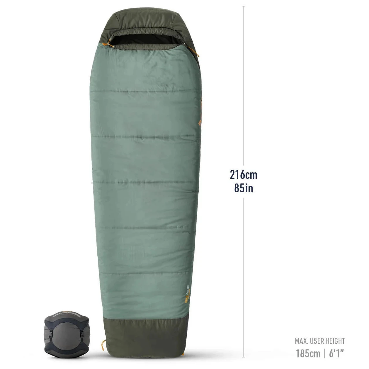Il sacco a pelo Boab -1C Regular di Sea to Summit è dotato di imbottitura sintetica realizzata in poliestere riciclato al 100% con certificazione RCS, multi-Denier. Le fibre sono cave per intrappolare più aria isolante e tre diverse grammature di fibre Denier offrono morbidezza e resistenza. Il sacco a pelo ha una zip a due vie su tutta la lunghezza, che in condizioni climatiche più calde consente di regolare la ventilazione o di aprire completamente il sacco a pelo e utilizzarlo come coperta.