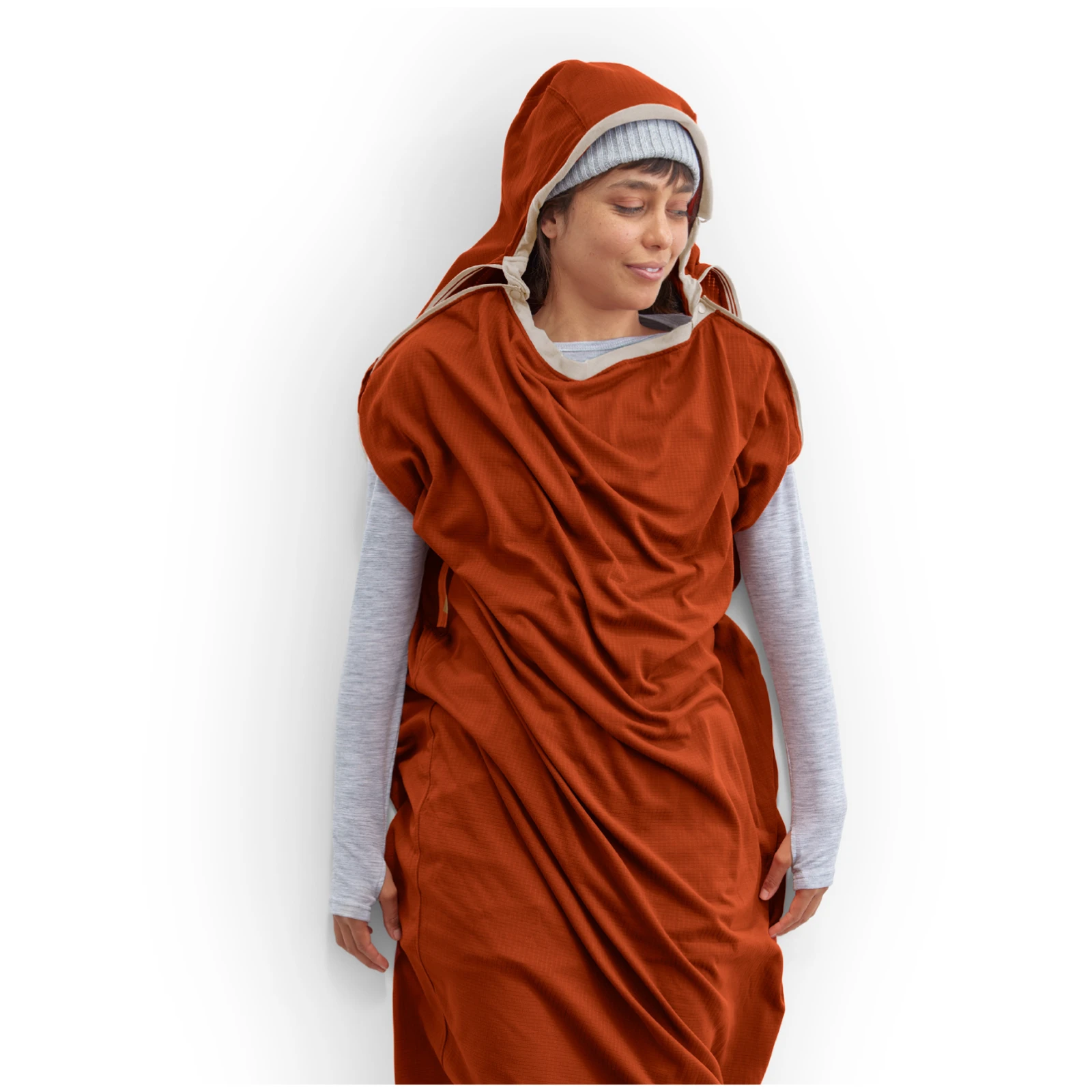 Il materiale elasticizzato in maglia e le pratiche aperture per le mani con zip consentono una libertà di movimento illimitata, indipendentemente dalla posizione in cui si dorme. Il cappuccio tecnico aiuta a mantenere il calore nella zona della testa e del collo, aumentando il comfort generale durante il sonno.