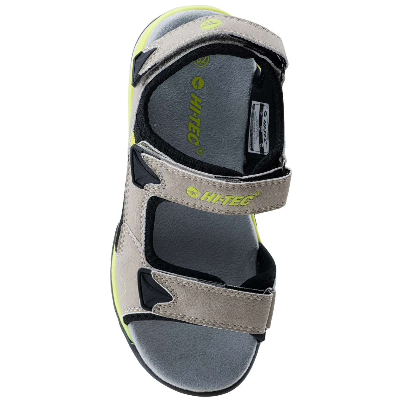 I sandali Maleni da bambino di Hi-Tec sono in colori naturali tenui. Sono adatti sia per la città che per le passeggiate in campagna. La scarpa si chiude con tre cinturini in velcro imbottiti e regolabili, che mantengono il piede ben saldo nella scarpa. La fodera in tessuto della soletta è molto confortevole per il piede del bambino e non deve preoccuparsi di eventuali abrasioni.