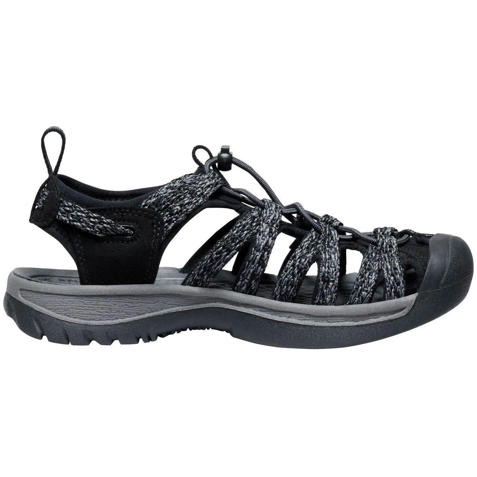 I sandali sportivi Whisper W da donna di Keen si adattano a tutte le specificità dell'anatomia del piede femminile. La tomaia in fettuccia stretta di poliestere consente una perfetta ventilazione. La fodera è in rete idrofobica e si asciuga molto bene. La comoda soletta in EVA, modellata a pressione, ha un trattamento antibatterico. È presente anche una protezione per le dita brevettata e completamente funzionale. Grazie ai materiali utilizzati, il modello Whisper è adatto anche agli sport acquatici attivi, compresa l'acqua di mare.